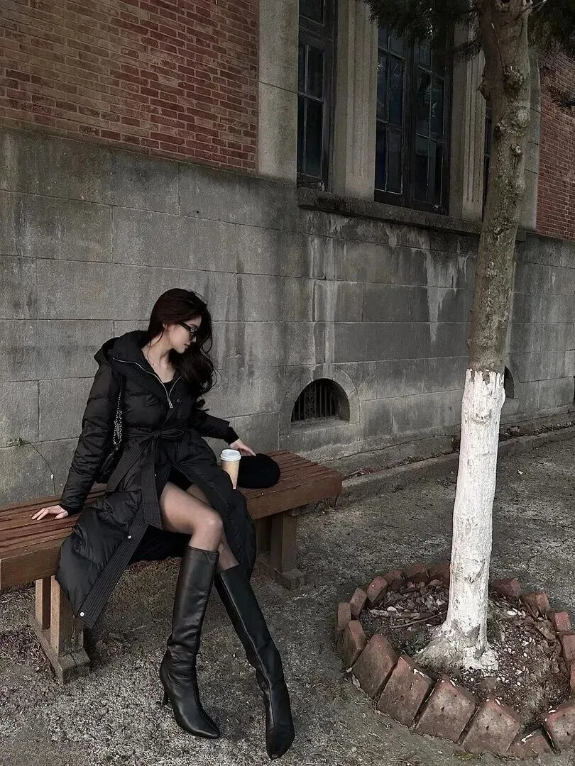 自由姐妹可以选择懒怠风。羽绒服配丝袜、长靴,简单舒服。找一个长凳坐下来说说话,一杯开水喝杯茶把身体暖暖起来。戴上细框眼镜、帽子之后,就变得文雅起来。不需要刻意摆姿势,自然状态最好看。