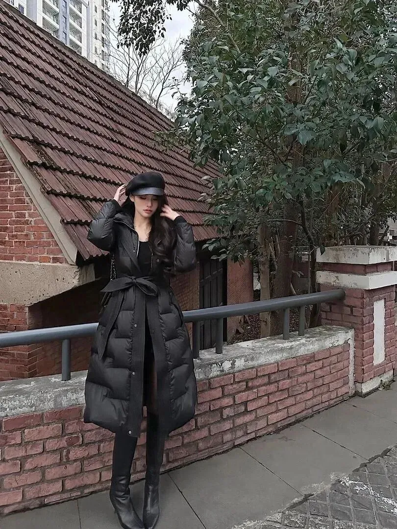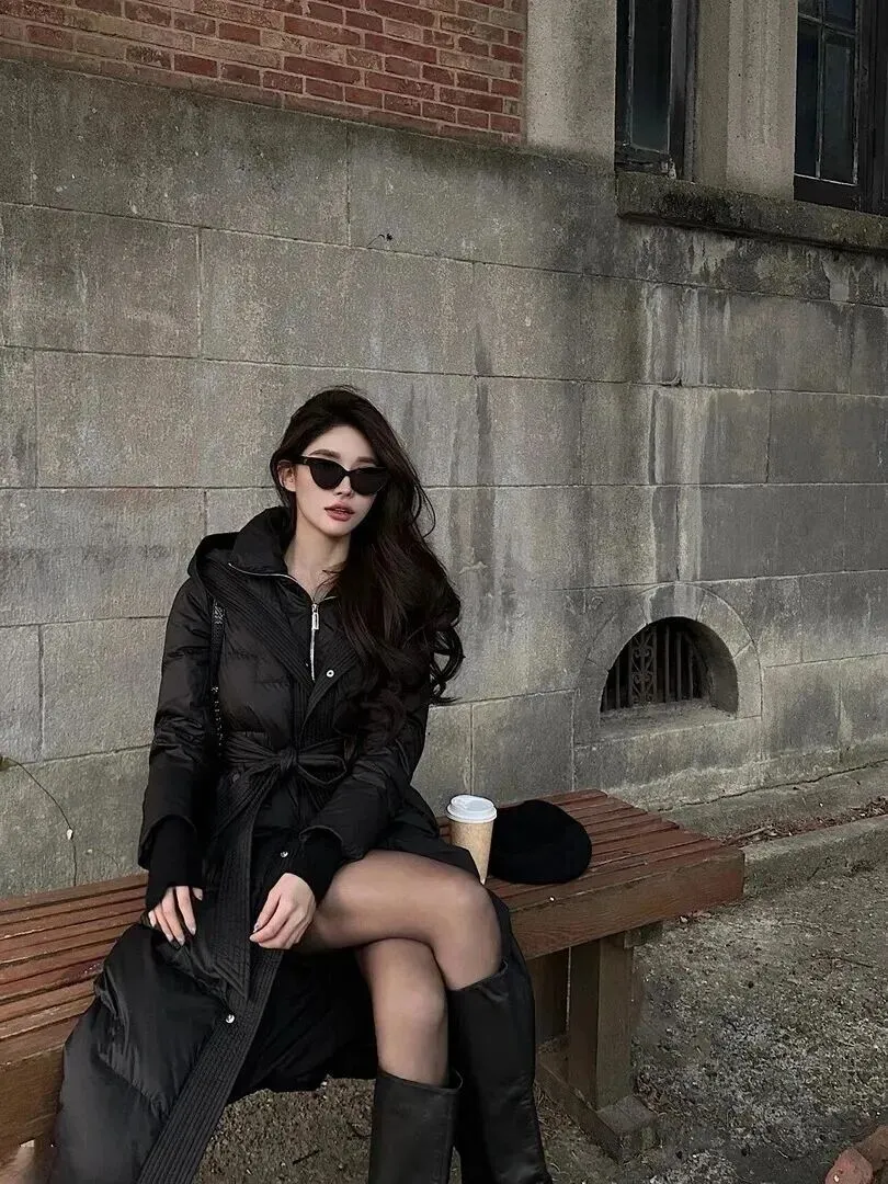 羽绒服首先说。很多人觉得羽绒服土气,实际上选择正确的款式就能成功翻盘。黑色长款羽绒服长度到小腿处,遮肉又显高。腰部加一条腰带来瞬间拉长,显瘦。她身穿短裙,黑色的丝袜加白色的鞋子,只露出了脚踝部位的脚背。再次戴上贝雷帽,背负上带有图案的背包,既复古又高雅地出去必然会被人们所注目。