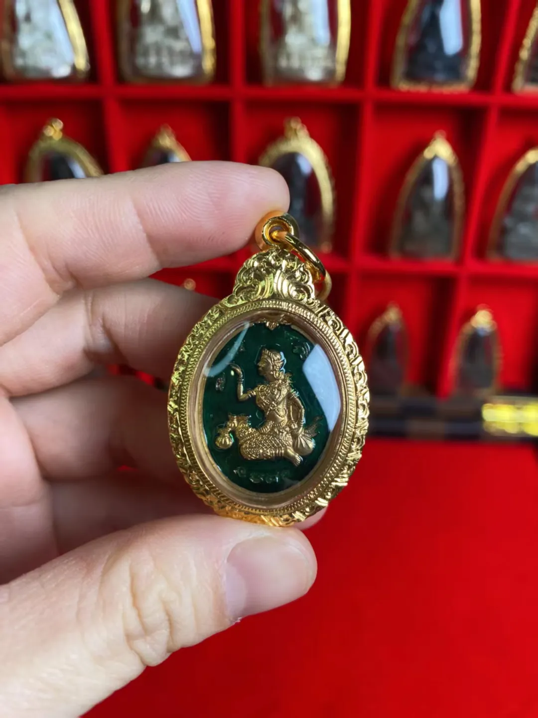 素帕瓦滴对佛法的敬重、一家人乐善好施的品行,渐渐传遍了四方。人们开始崇拜素帕瓦滴,向她祈求生意顺遂、财运亨通。即便一家三口都已往生,村民们依旧记得他们的善举,一直供奉着素帕瓦滴。后来有钱人为她塑了金身,供人参拜祈福,这份信仰随着佛教与婆罗门教的传播来到泰国,高僧们便将她塑造成抬手招财的法相,结缘给善信,这便是招财女神最初的由来。