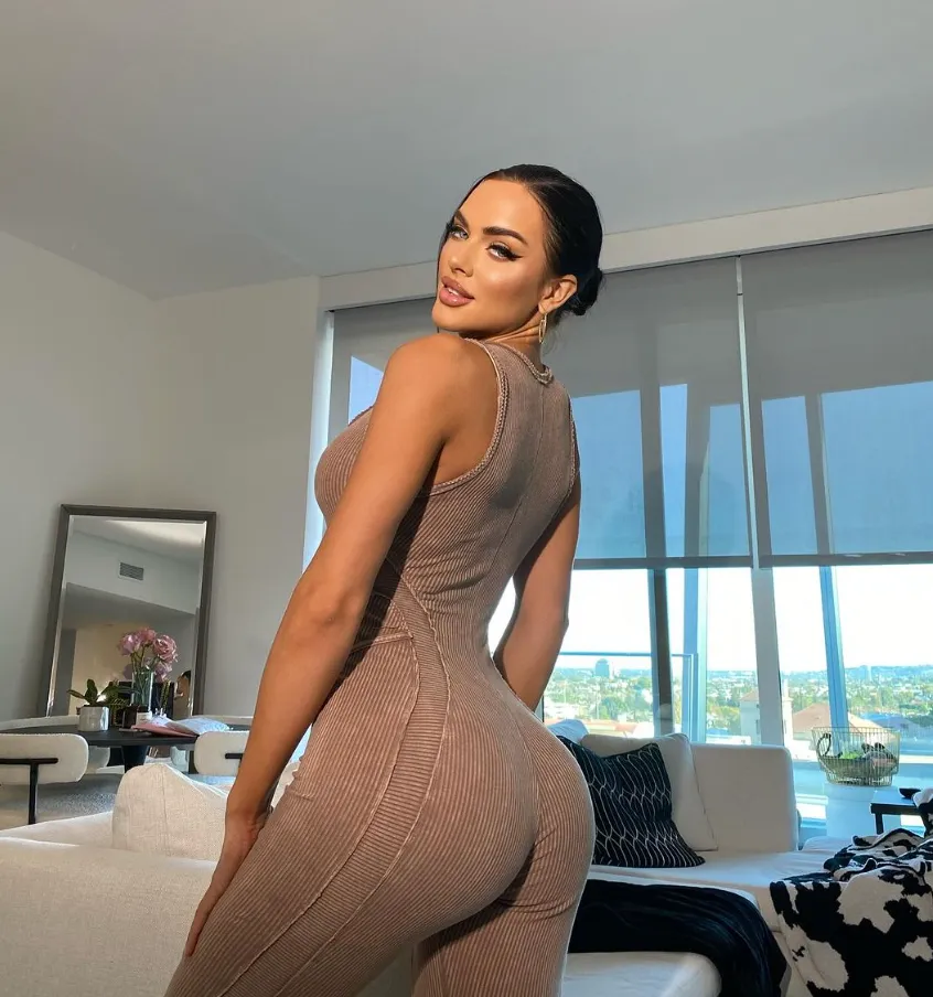 Kelsie Jean Smeby,1995年6月23号在挪威出生,身上流着挪威和意大利两边的血.她是个模特,也是个小有名气的网红。身高1米73,三围33-25-35,一头黑发,还有一双特别好看的绿眼睛。说实话她那种优雅劲儿、健康的身材,再加上天生会找镜头的感觉,不光让她上了《Maxim France》杂志,还给Guess拍了挺多广告.在Instagram上,她也攒了几十万粉丝,在这个时代她算得上是个挺有分量的时尚角色了.