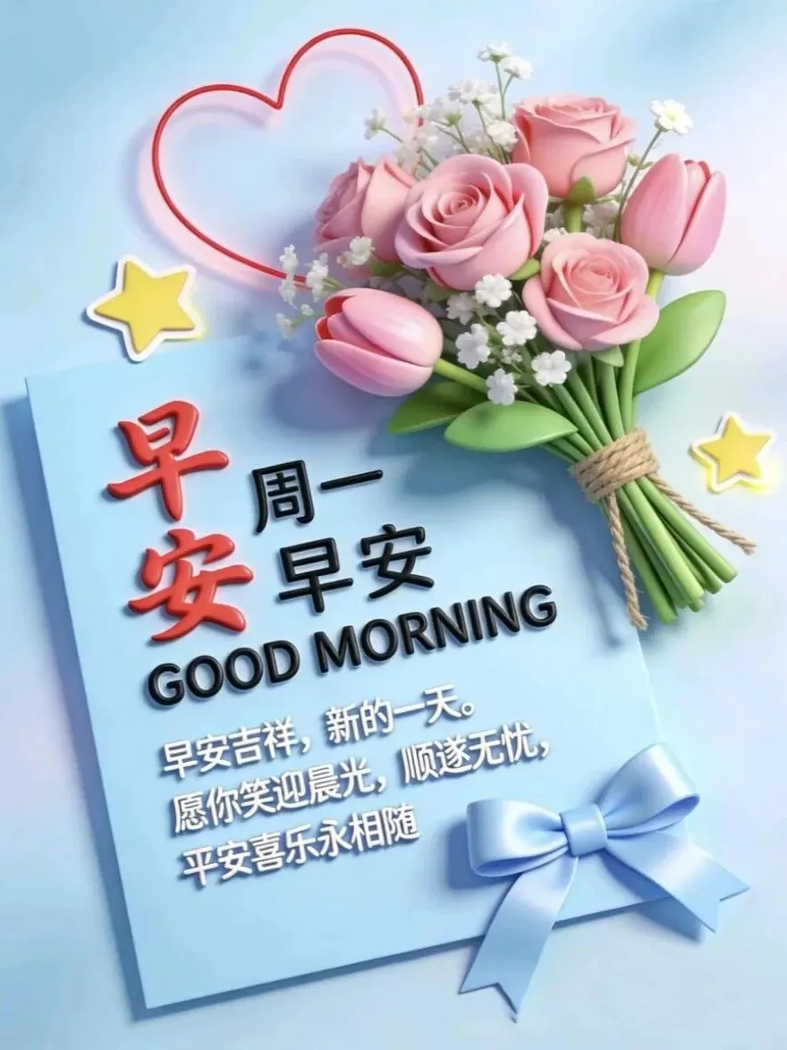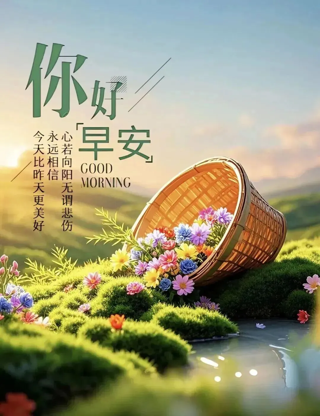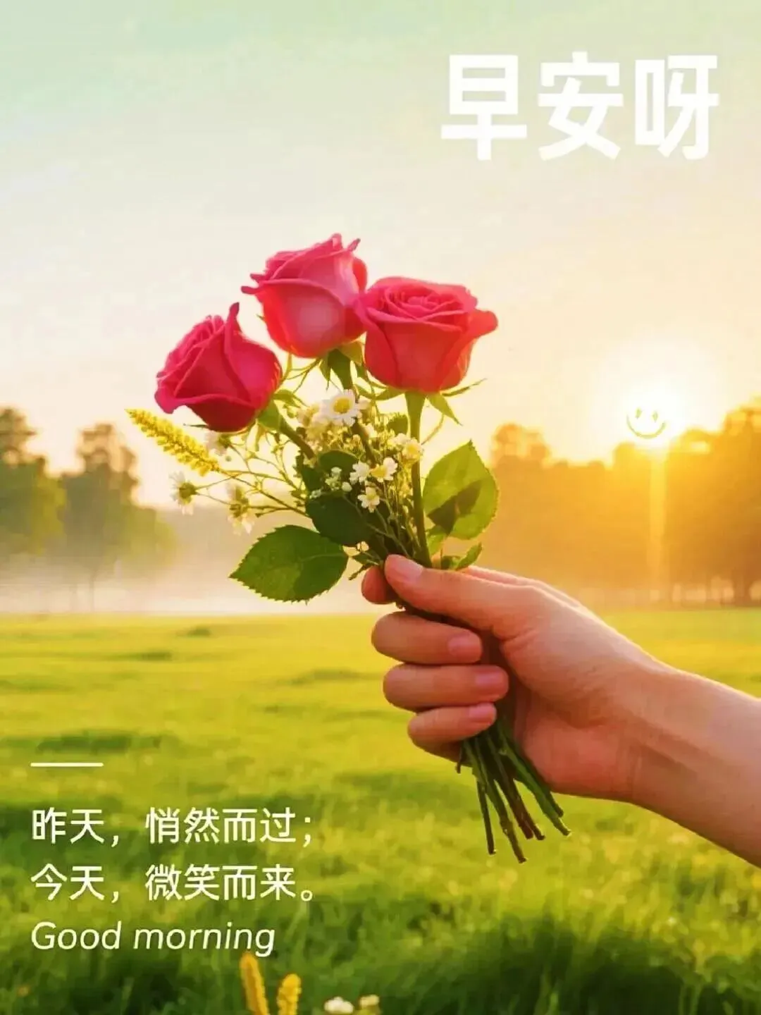 新一天,心向阳,步履从容。晨光清澈,云也温柔,所有美好都在悄然绽放。愿你把岁月酿成糖,简单也幸福,安稳又舒畅。