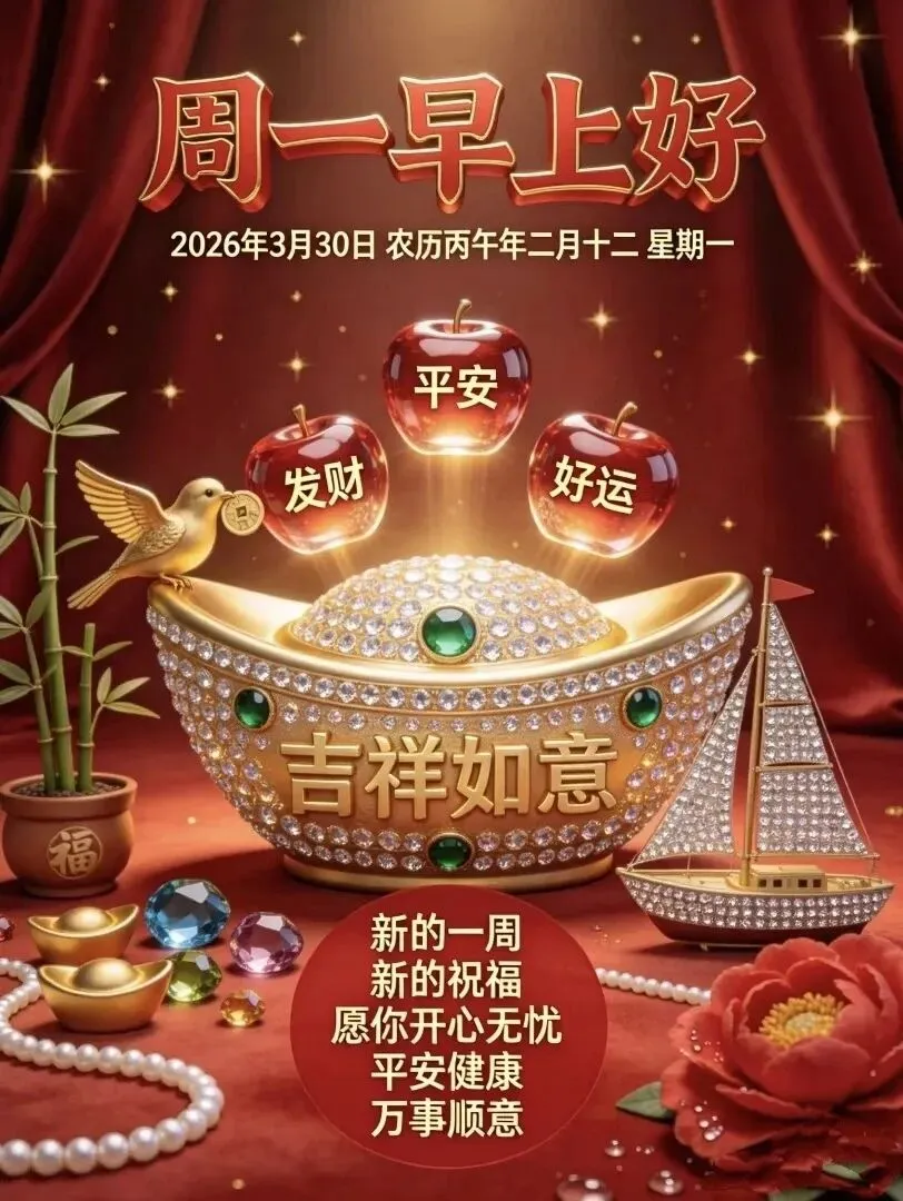 当前位置:首页>美女资讯>3月30日最新版早安图片和祝福语,祝您早安吉祥,万事顺遂