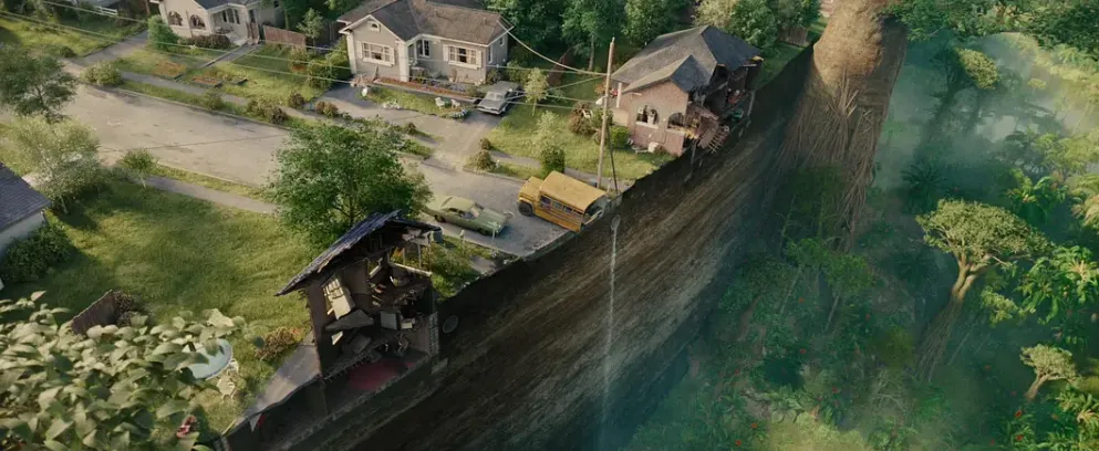 《逃出绝命街》最恐怖的地方,不是恐龙。是“家”这个概念,被彻底粉碎了。你家门口那条走了十年的橡树街,现在通向的是史前丛林。你家后院那个秋千架,旁边站着一只比你房子还高的掠食者。你还能往哪儿逃?
