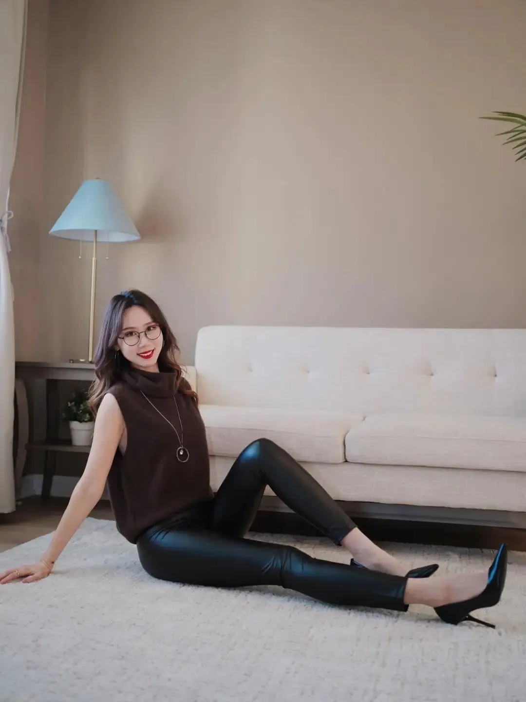 当前位置:首页>美女资讯>眼镜红唇配皮裤,居家女神的优雅侧影杀