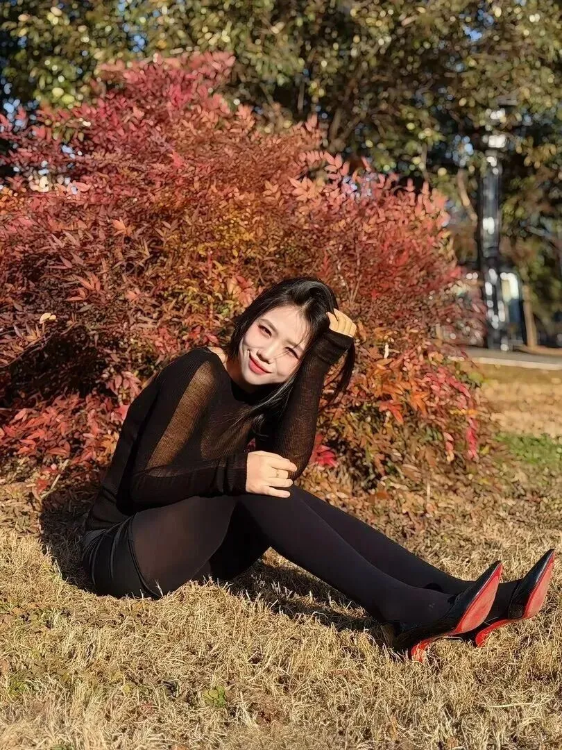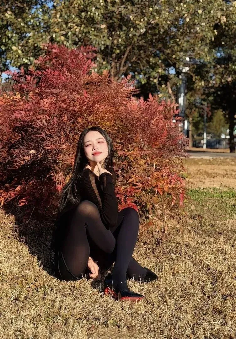 要想拍出秋日电影里的文艺片效果?沉静风要试试!半透明黑色针织衫搭配短裙,质地好、有质感,高级。坐着在红叶植物下面抬头一望,就会发现那阳光穿过树叶缝隙留下的斑驳之景,在这棵树之下就像千万盏灯火同时闪耀一般闪烁着,从而令这处环境也变得热闹了起来。
