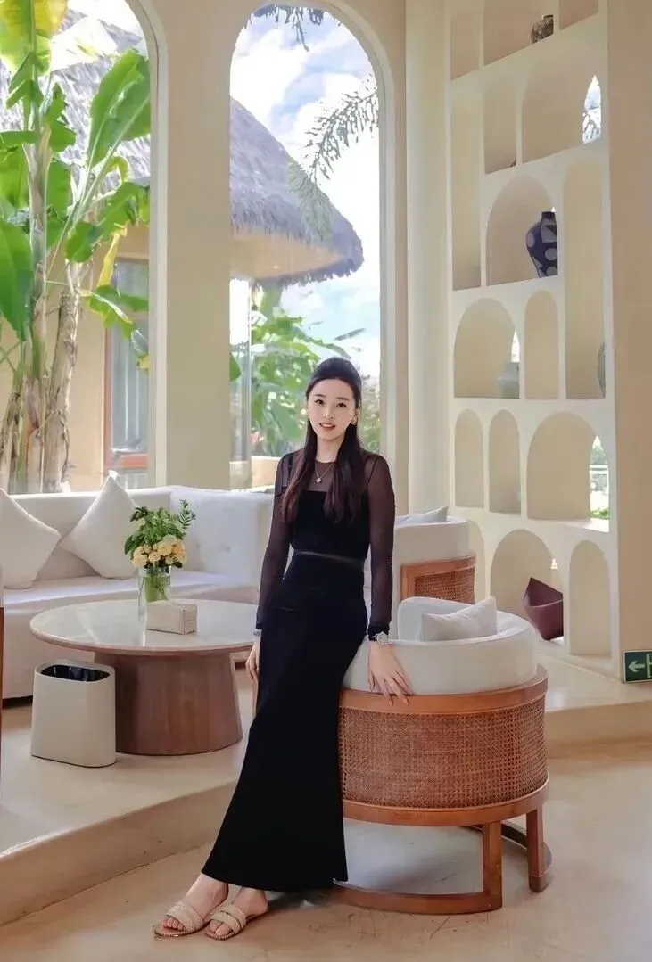 去闺蜜家吃饭穿什么?黑色透视上衣配上丝绒鱼尾裙,高贵有几分小性感的味道。透视网纱如果半露不露,鱼尾裙的垂坠感极佳,身材曲线美到不行。米白色编织凉拖+金属表带手表,细节之处见用心。度假风的房子里,外面就是大片的落地玻璃带绿植,在这里真的就像是站在了巴厘岛的度假村一样。和闺蜜喝茶、拍照,非常惬意。
