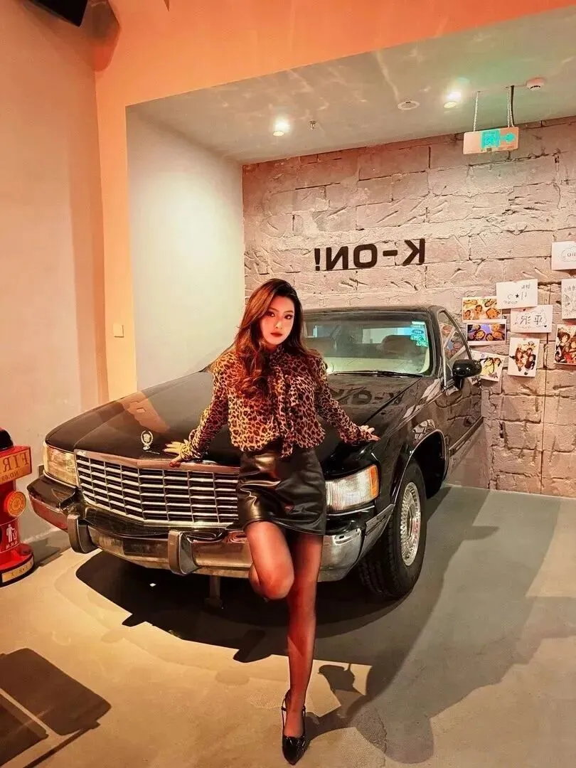 最爱的这张是她靠着老轿车,背景墙满是复古贴纸,瞬间就被氛围所吸引。衬衫飘带在风中飞舞,美满的提升。双手按在引擎盖上,左腿微弯,力感和美感兼具,有电影里的女主角转身前定格的感觉,潇洒。