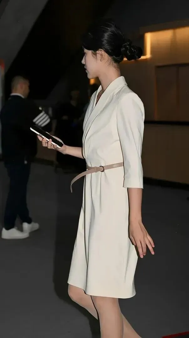 小红低头看手机的方式是很专注的。从容的态度使人感觉到,穿衣不但是外在的展示,更是一种内在的体现。真正的美才最有力量。