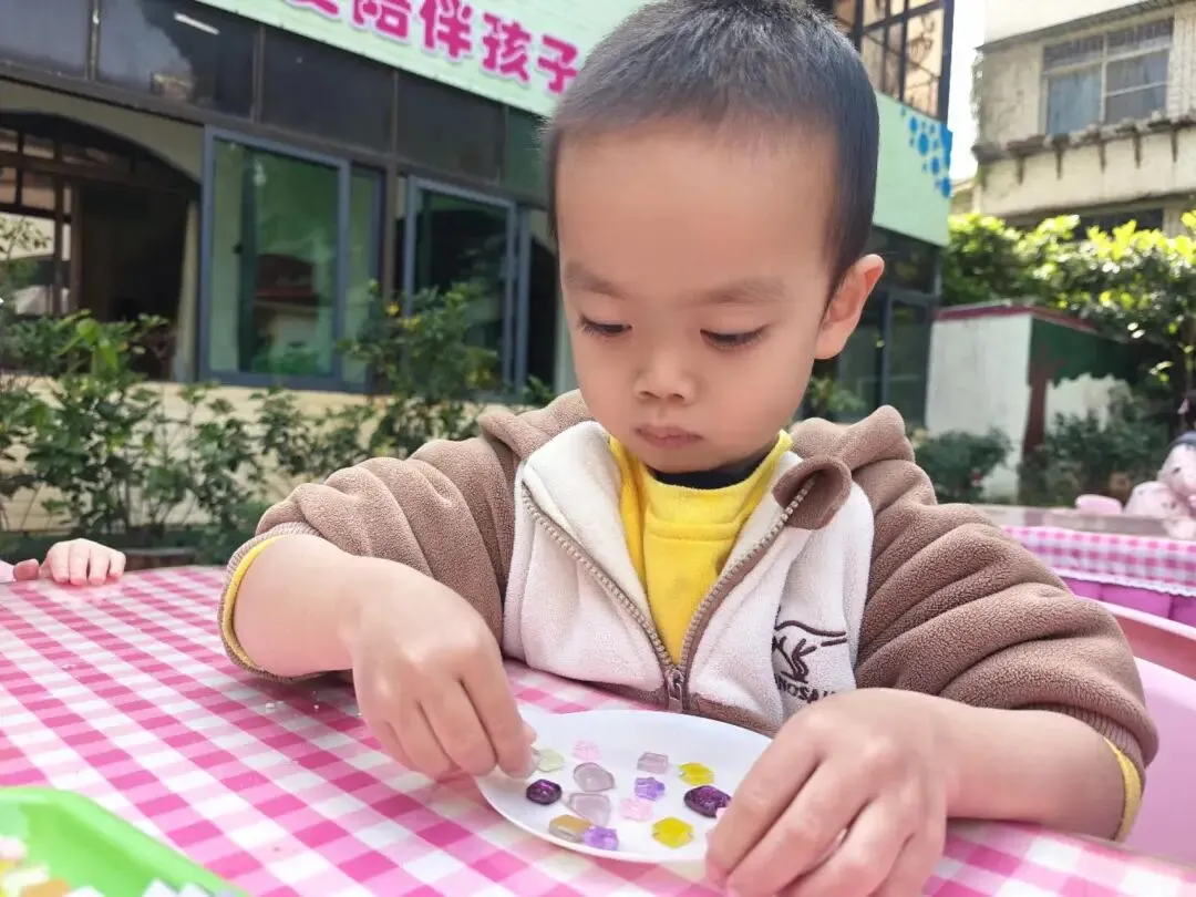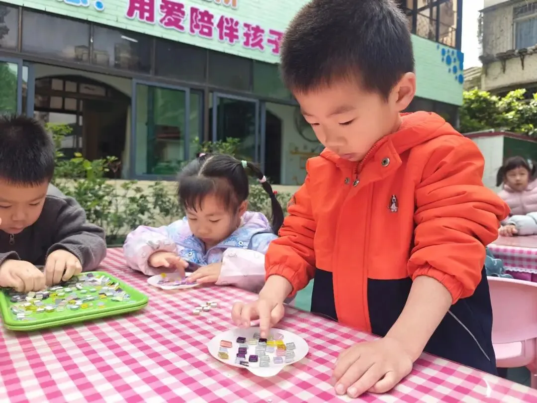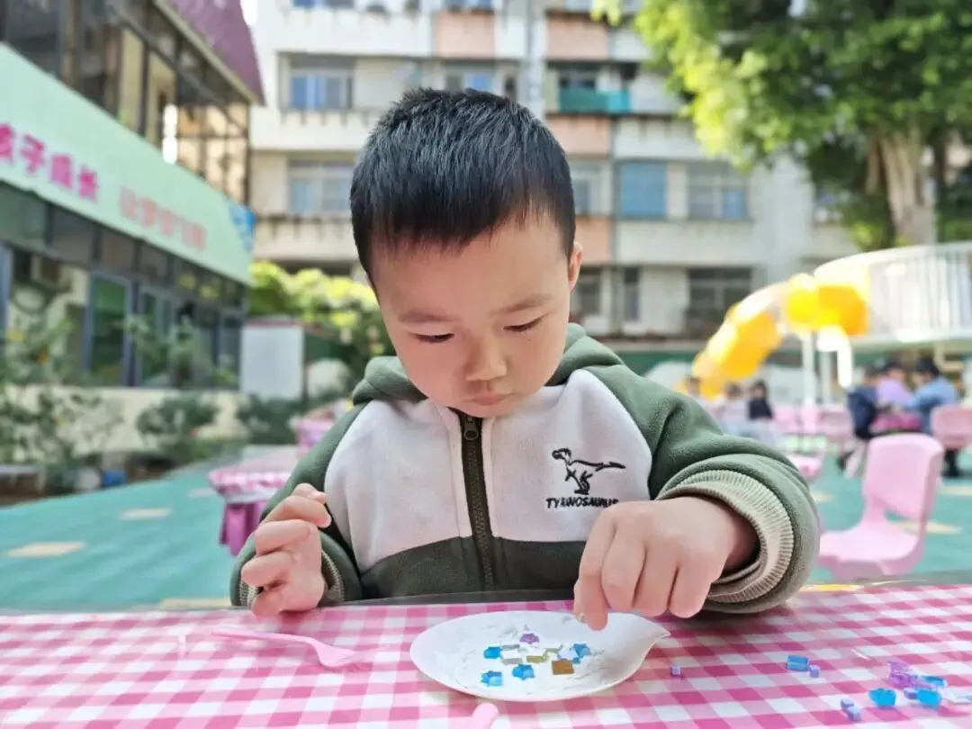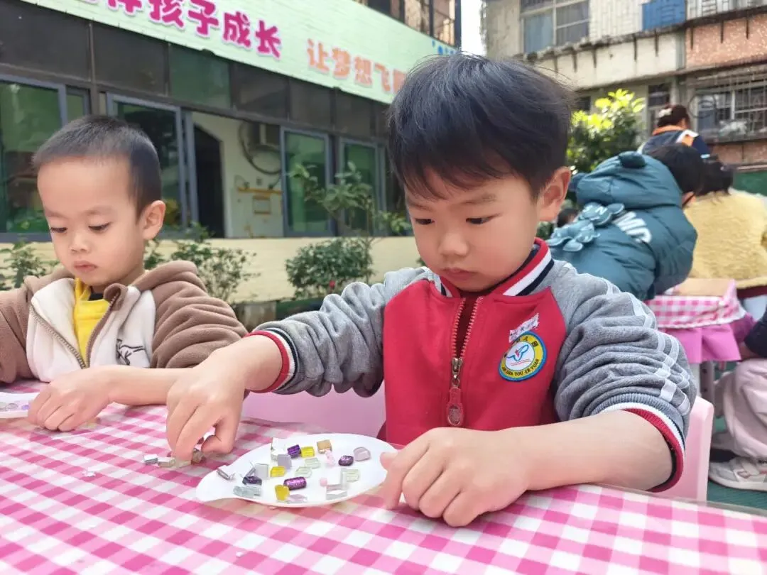 托、小班幼儿们用五彩马赛克片,亲手拼出小小的首饰盘。一块块色彩,是幼儿们最纯真的心意;一片片拼接,藏着满满的爱与祝福。小小的盘子,装得下温柔饰品,也盛得下稚拙又真诚的感恩。