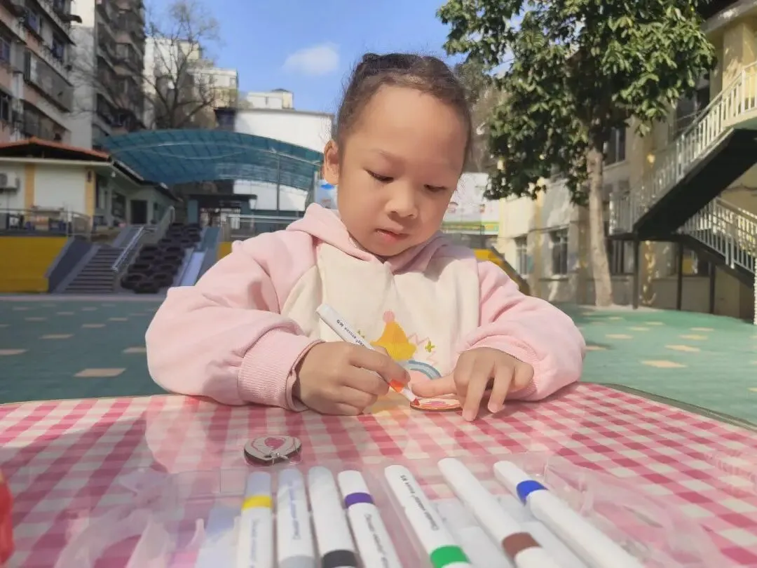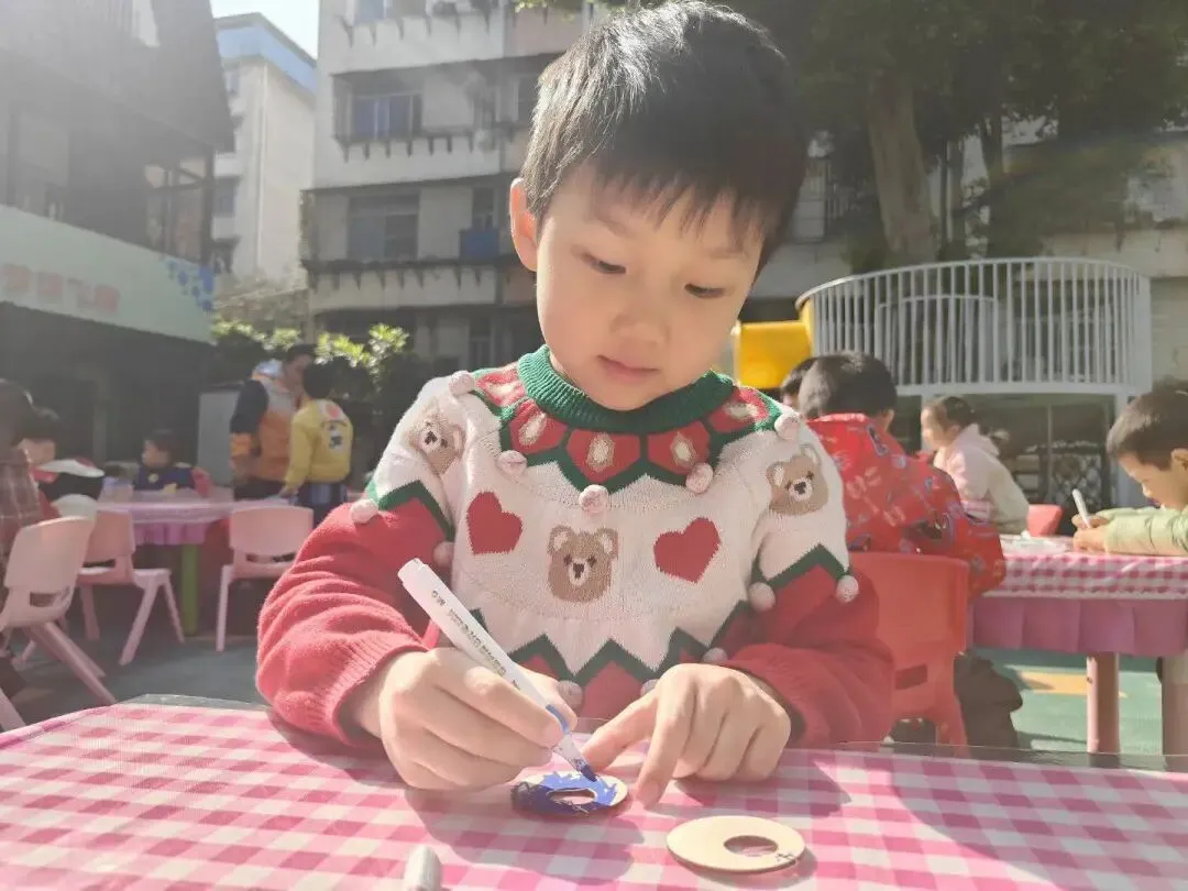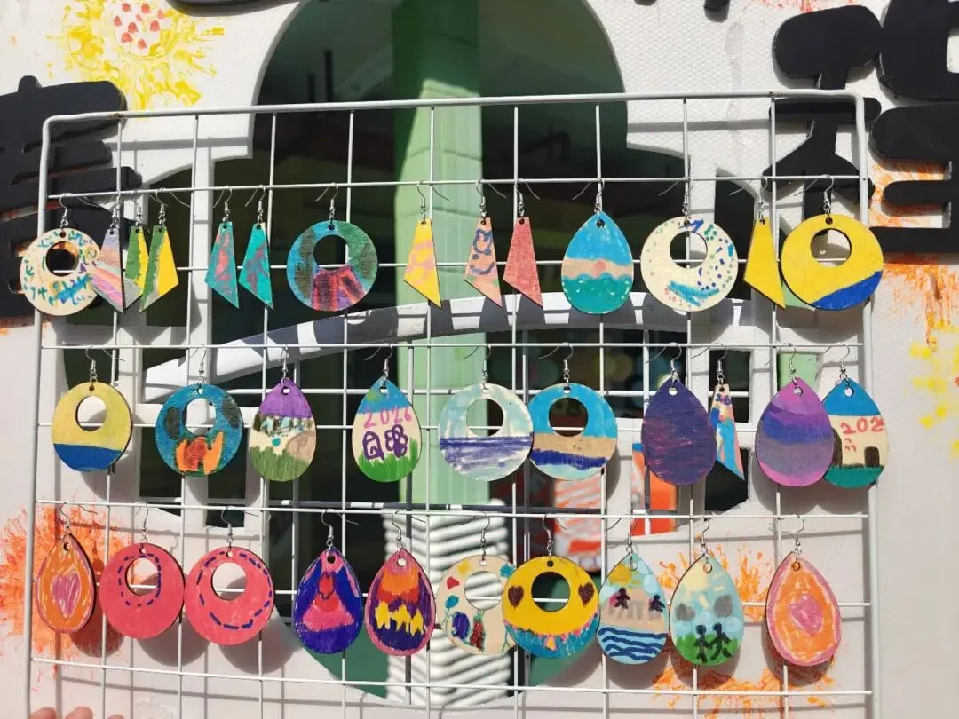 大班的幼儿化身小小设计师,用心制作了独一无二的木质耳环。他们认真思考、细心装饰,用稚嫩的小手勾勒出可爱的造型,每一对都藏着满满的童真与心意。幼儿把对妈妈、奶奶、婆婆的爱与感恩,都融入这份小小的礼物里。