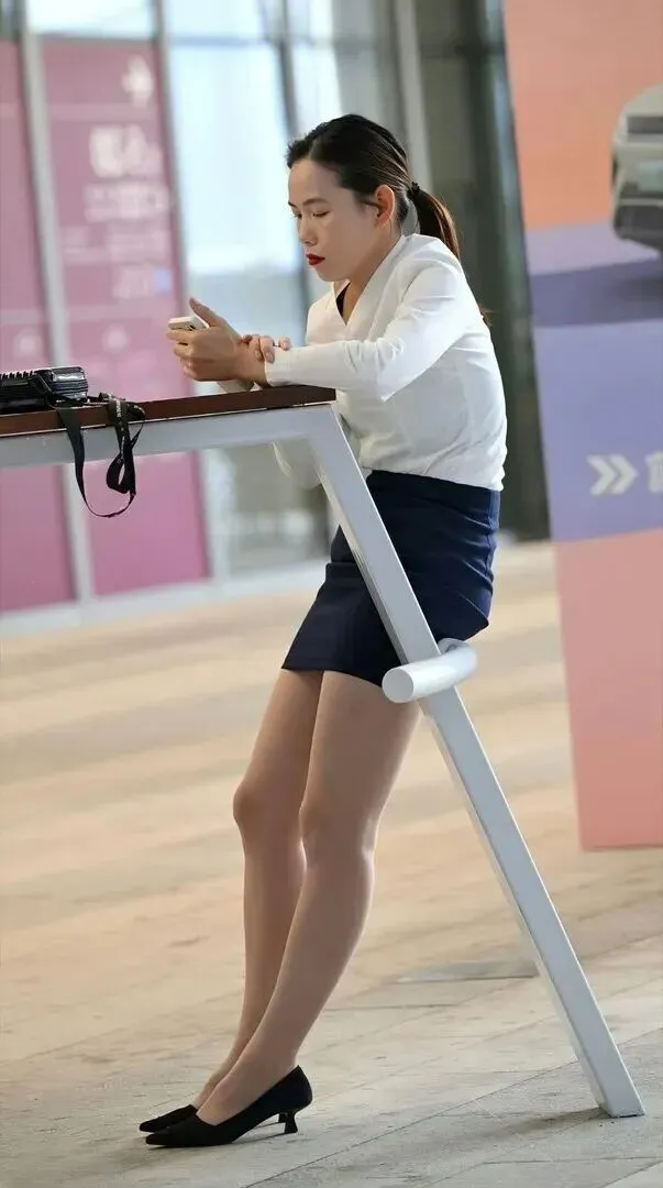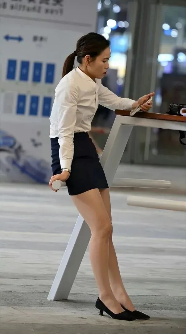 同别人交谈时,自己的影子都有意地在动。修身衬衫很好地塑造了身体的曲线,包臀裙突出了腰线,黑色细跟高跟鞋立刻让气场被点亮。虽然只是背影,但是头发到脚踝的每一个地方都透着专业与自信!