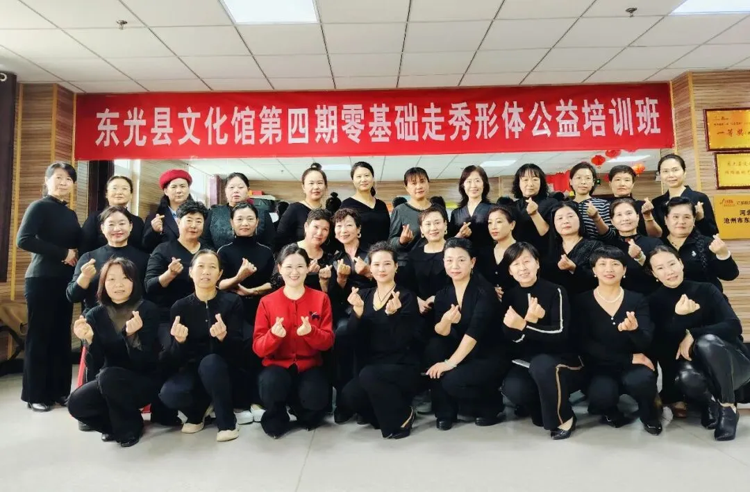 春风送暖,艺韵满城。为深入推进全民艺术普及,建设全县人民的 “终身美育学校”,东光县文化馆零基础模特形体走秀公益培训班(第四期)正火热开展中。课堂上,热爱生活、追求美好的学员们齐聚一堂,在专业老师的悉心指导下,从零基础起步,解锁优雅体态,绽放自信光芒。