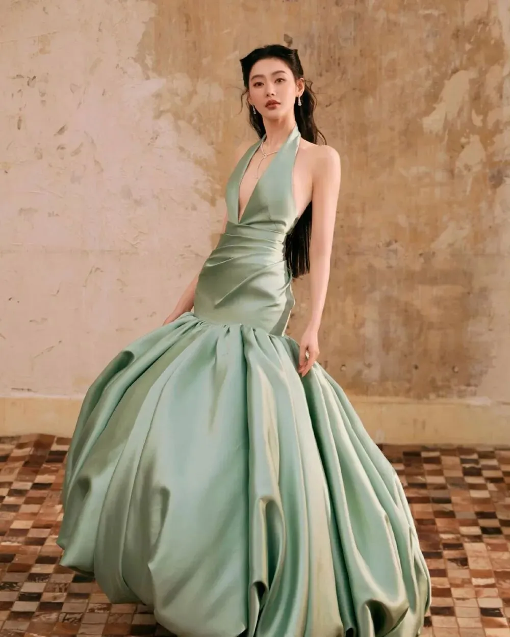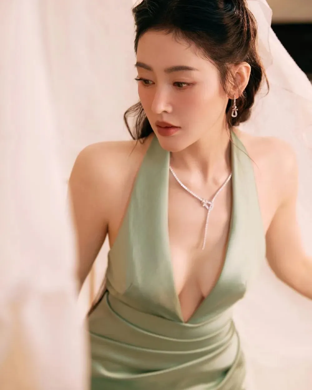 当前位置:首页>美女资讯>明星写真头像壁纸|张天爱薄荷绿挂脖裙杀疯了!深V勾勒天鹅颈,复古氛围感直接封神