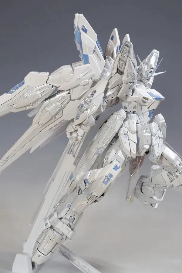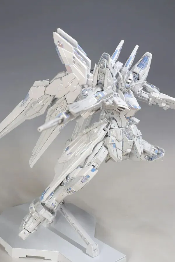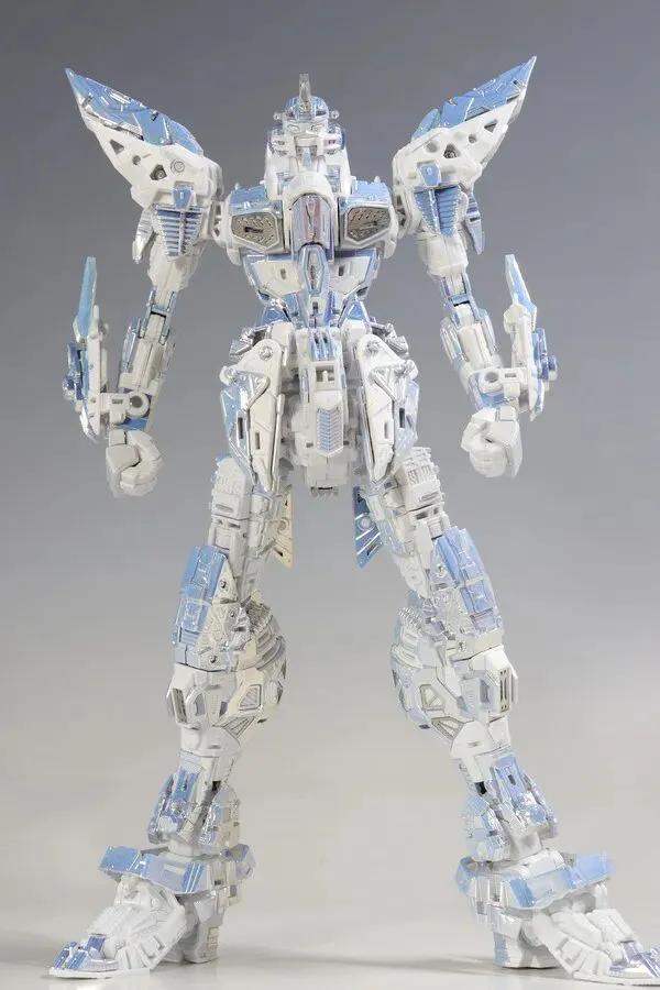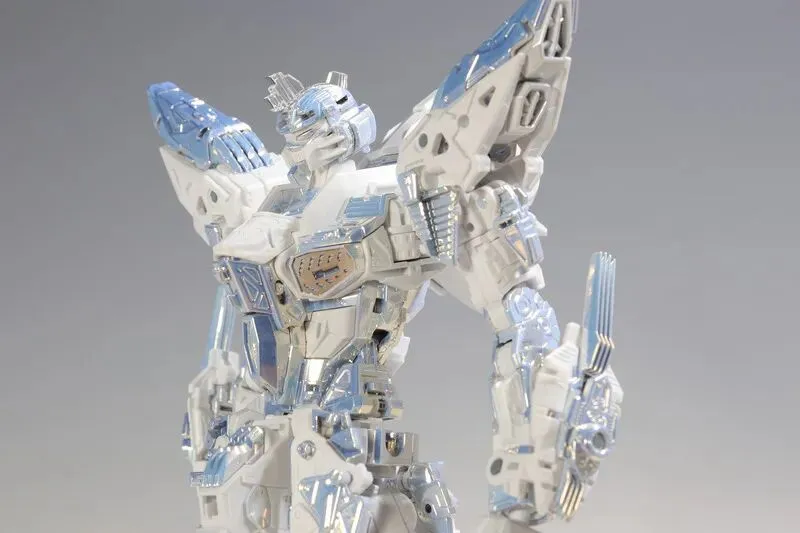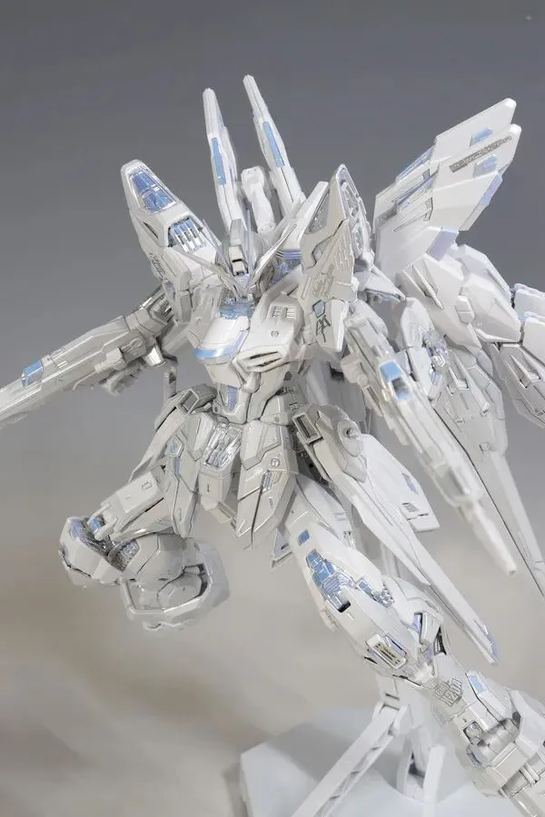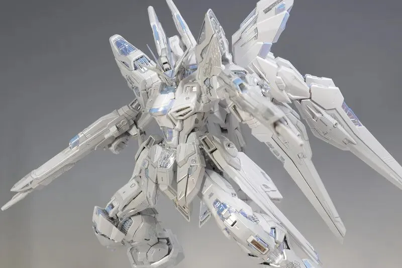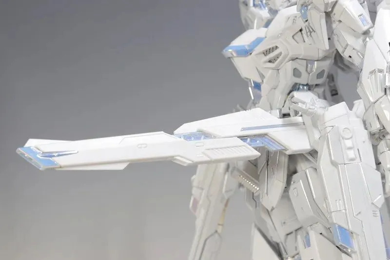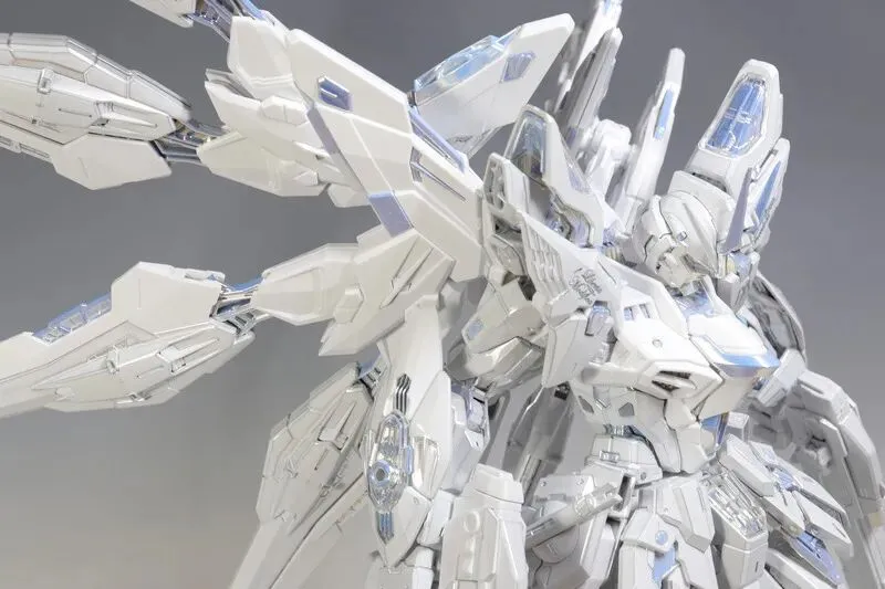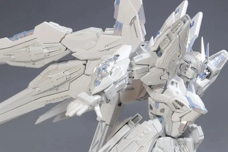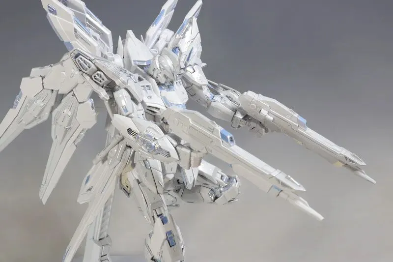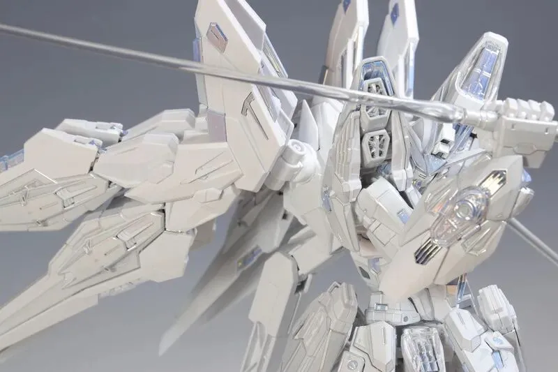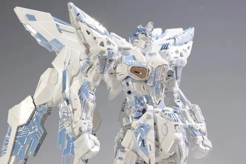这是完成品实拍效果。本品全身多处采用白色电镀钛合金质感涂装,并搭载全新工艺暮光涂层,为超豪华限定规格。