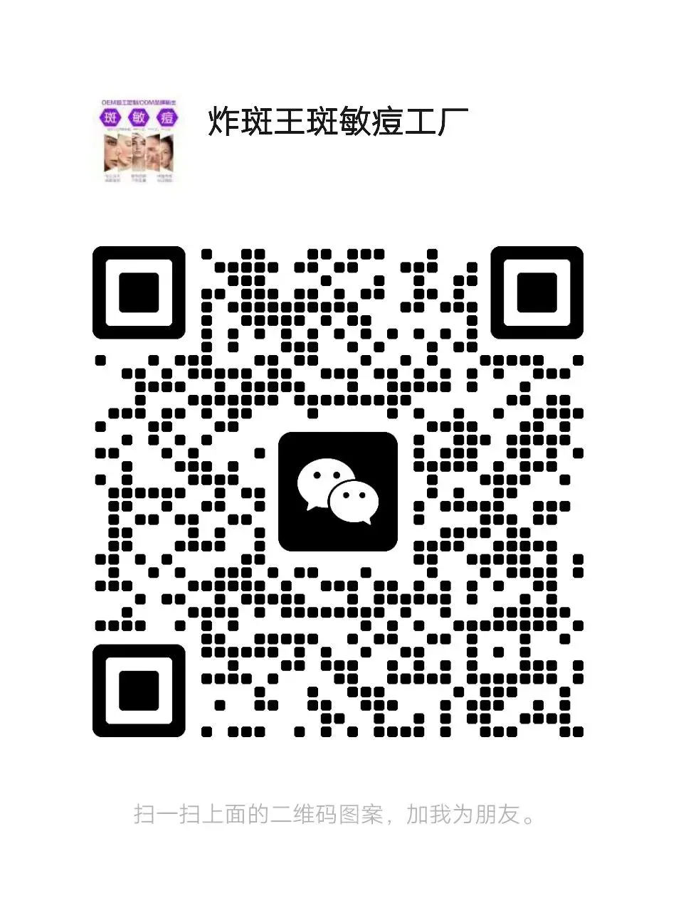 工厂主要生产OEM代工:美白祛斑、中药祛斑、精油祛斑、祛痘袪印,祛黄嫩肤,祛皱抗衰,收缩毛孔,毛襄清洁,痘痘肌,激素脸,铅汞斑等各种功效型产品,针对各种肌肤问题。祛斑祛痘去痣,不反弹不复发、不色素回流、不留疤留坑、不怕角质层变薄、不皮肤敏感、不怕日晒、不依赖产品、安全有效无依赖。访样打样免费试样,各种功效型产品效果保证,欢迎+微bird11222咨询,扫描下方二维码或留下您的联系方式我们会有专人联系您