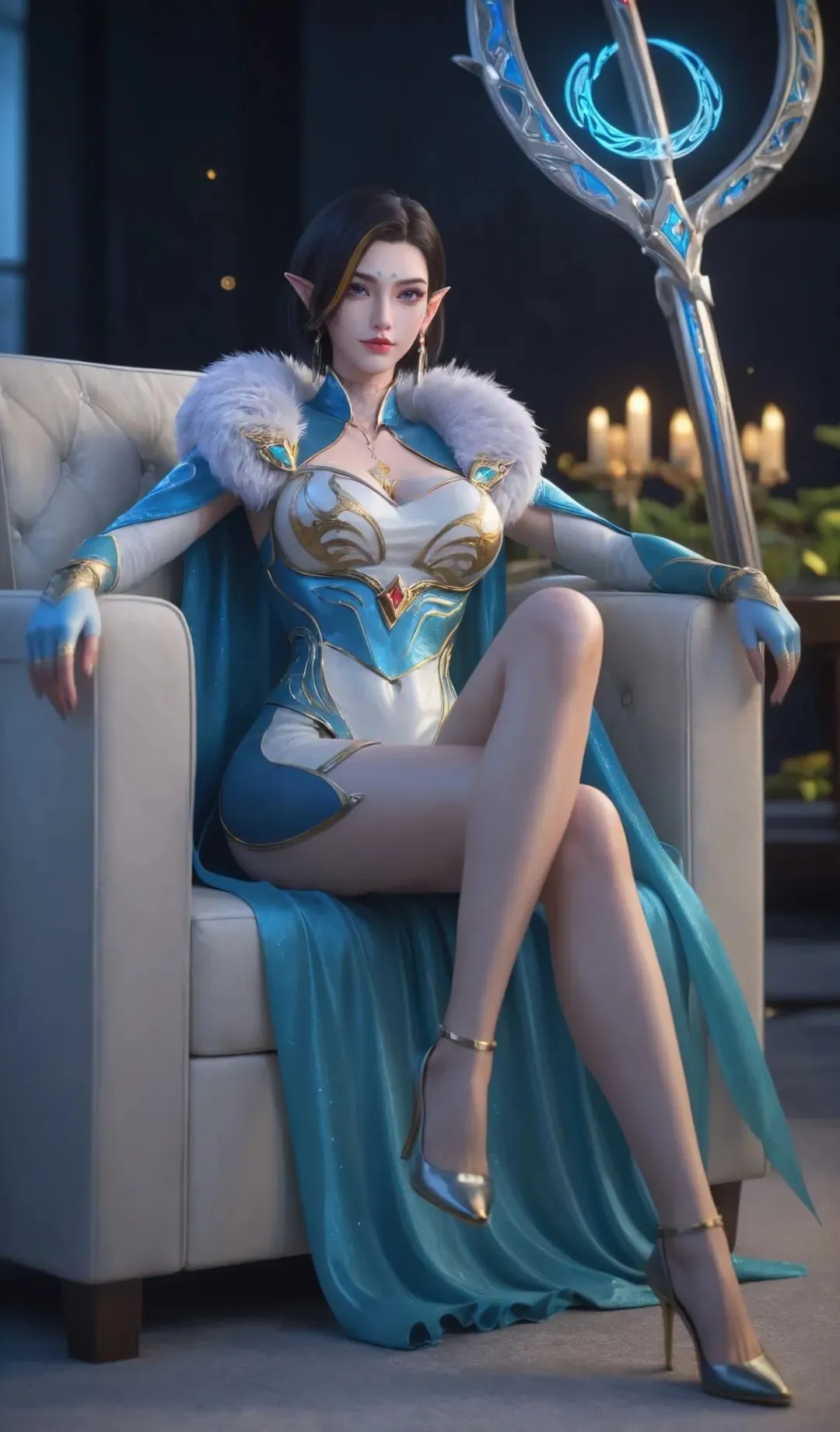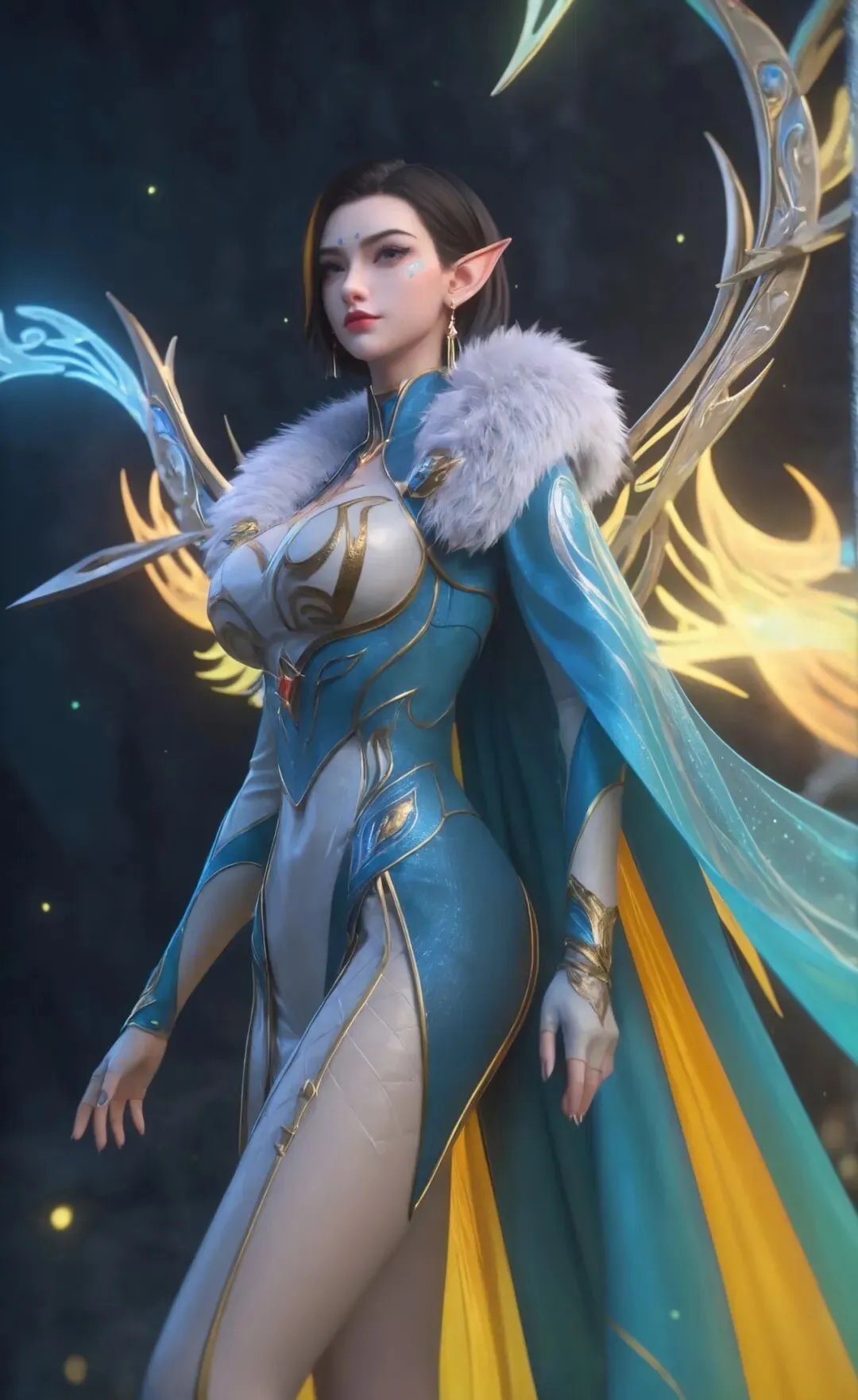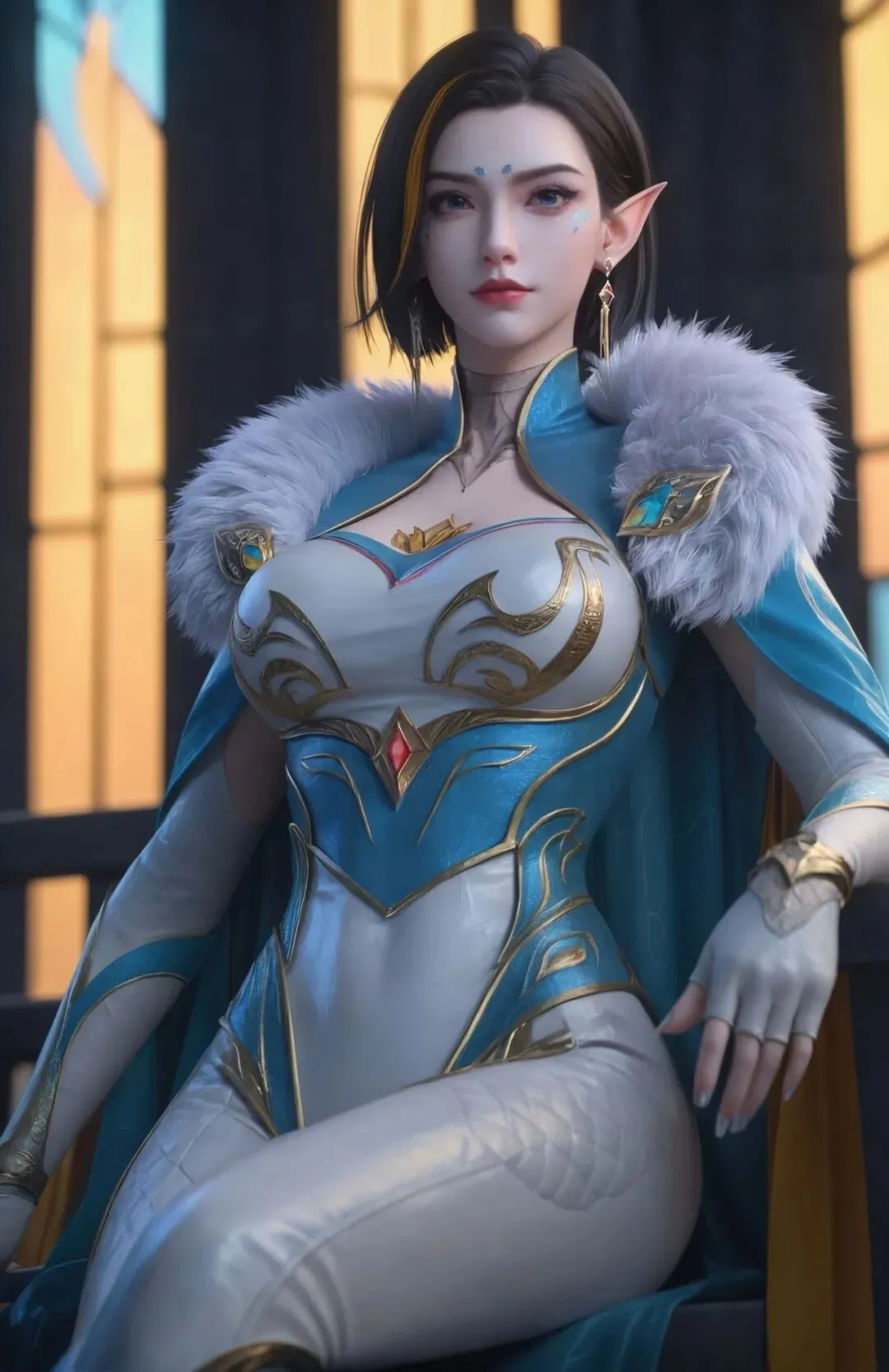 先说说造型,这是争议最大的点。原著里凤凰是红裙、三十岁左右、煞气逼人,动画却改成了蓝银为主的紧身皮衣造型,搭配毛绒护肩和八块腹肌设计,既有御姐的成熟气场,又有魔兽种族的印花标识。建模细节很用心,皮质衣物的反光、披肩的绒毛质感、发丝的挑染都做得很精致,整体颜值不输凤清儿,不少观众觉得 “建模在线,又美又飒”。但也有原著党吐槽,这种 “黑帮大嫂” 风格偏离了原著设定,少了那份尊贵的压迫感。