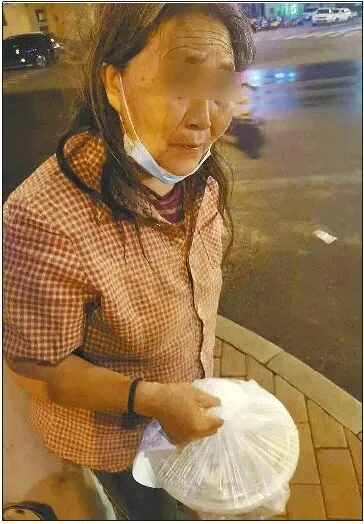 很快,在不远处一个路口,乔先生看到一位老人独自站在电线杆下。老人头发很长,看上去70多岁。他赶紧拍下了老人的照片询问,顾客汤先生很快确认:“是的,就是她。”