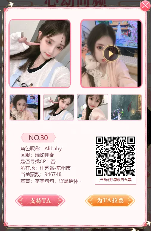 小记者小程特别采访到了目前高级赛区女神榜榜首的少侠:Alibaby˙,让我们走进她的天龙江湖~