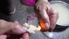 他称这种絮状物是“棉花”,并试图用打火机点燃“棉花”。