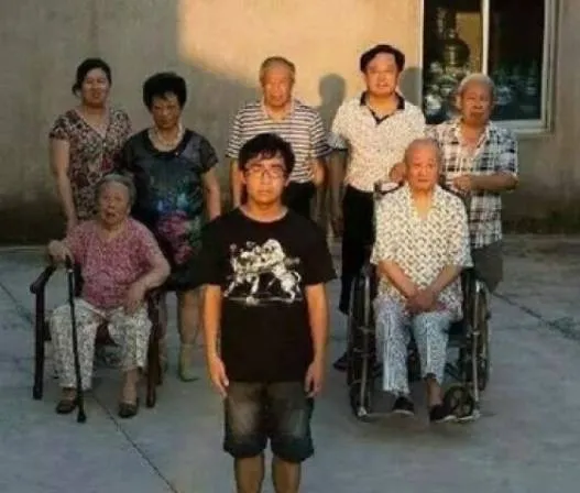 江苏如东县一个遵守一胎政策的家庭,一家八口只有一位年轻人,真是一张恐怖的全家福。