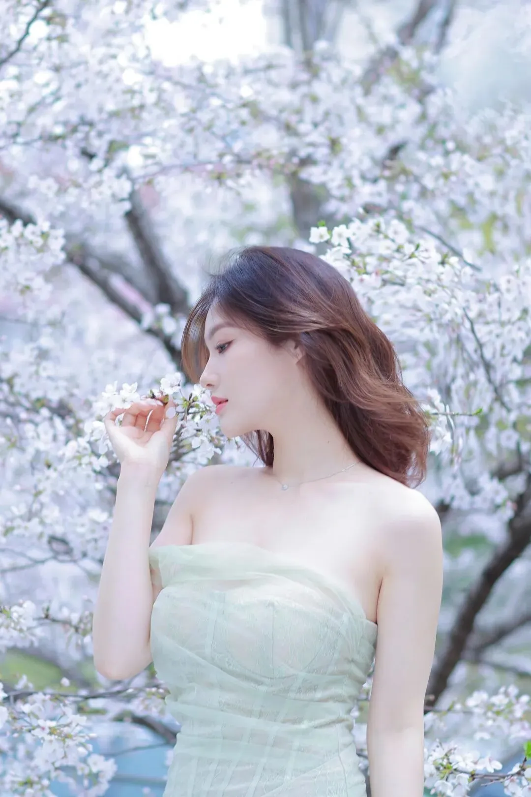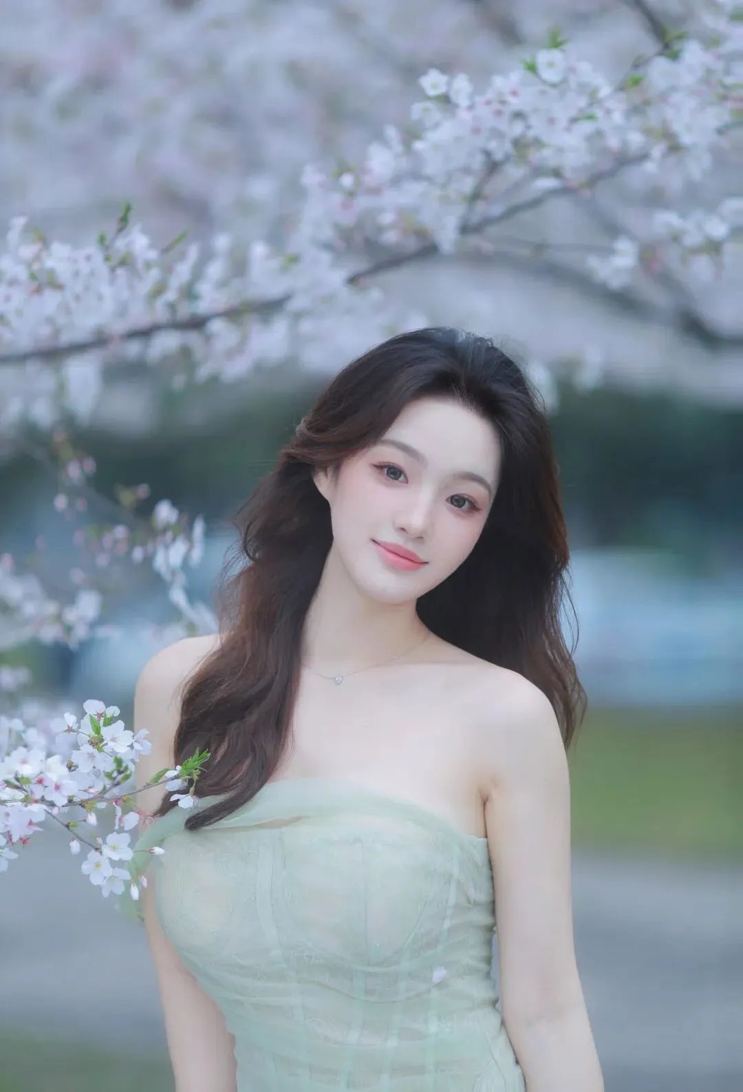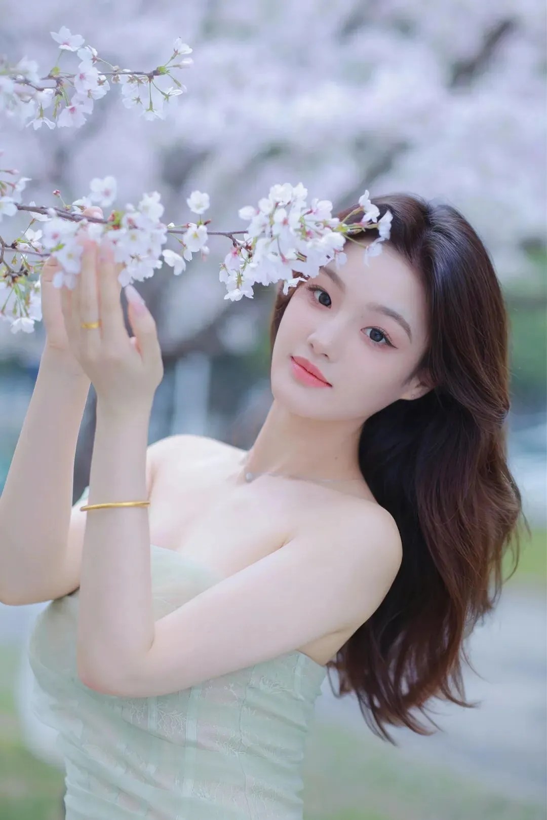 📷春风漫过枝头,樱花落满肩头。淡绿抹胸裙衬出温柔轮廓,金饰点缀出细腻质感,抬手轻触花簇的瞬间,把春日的浪漫与少女的清甜定格。风是软的,花是甜的,连光影都在为这份春日氛围感心动,每一帧都是写给春天的情书。