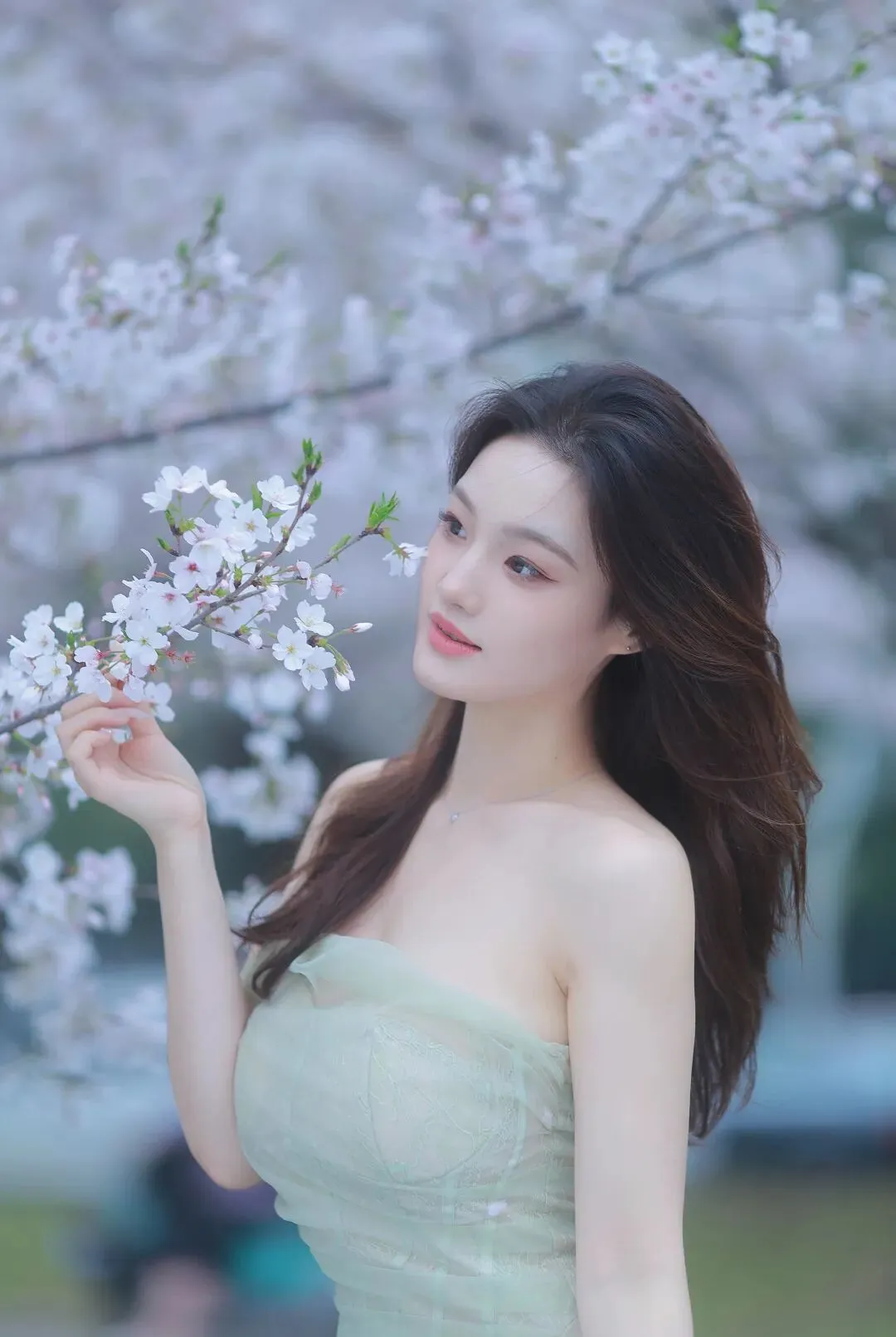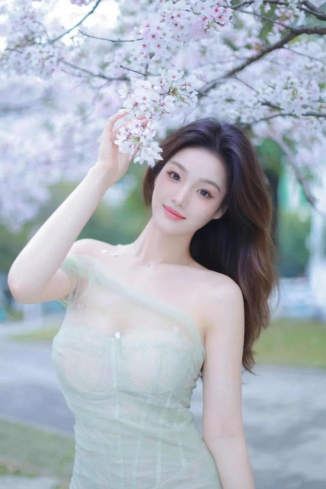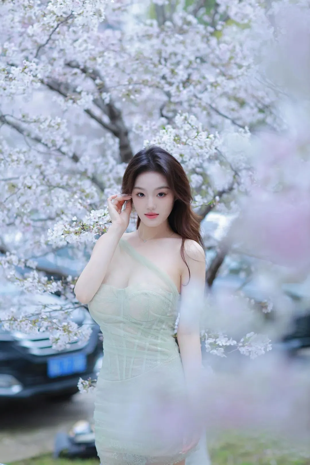 📷春风漫过枝头,樱花落满肩头。淡绿抹胸裙衬出温柔轮廓,金饰点缀出细腻质感,抬手轻触花簇的瞬间,把春日的浪漫与少女的清甜定格。风是软的,花是甜的,连光影都在为这份春日氛围感心动,每一帧都是写给春天的情书。
