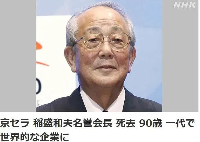 据日本放送协会(NHK)报道,日本著名实业家、京瓷公司名誉会长稻盛和夫于8月24日在京都市的私宅中去世,终年90岁。