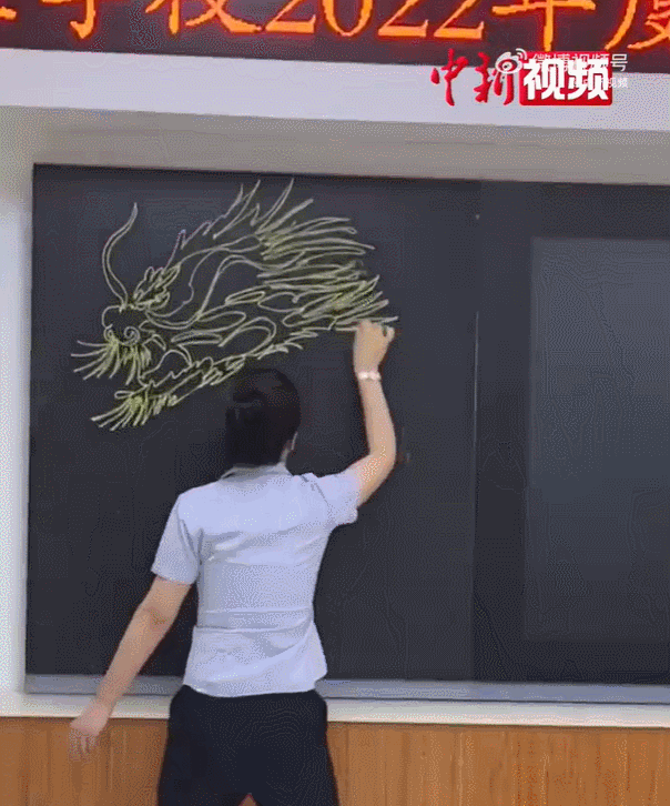 听说老师们个个身怀绝技?近日,河南商丘一位美女老师在黑板上“一笔画龙”,动作飘逸潇洒,画面栩栩如生,令人叹服!