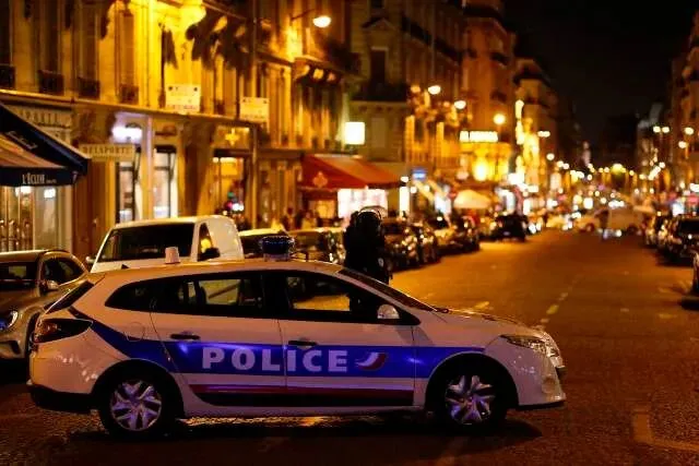 ·2017年4月20日,在法国巴黎,警察封锁香榭丽舍大街附近的道路。