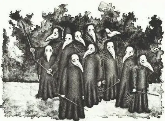 不久后,这则广告如同黑死病这种烈性传染病一样,从该国传向全球网络,这个组织也从那时起在网上出了名。有好奇的网友点开招聘广告附带的网址,一张黑白图片映入眼帘,上面画着11个穿黑长袍、戴白面具的人。
