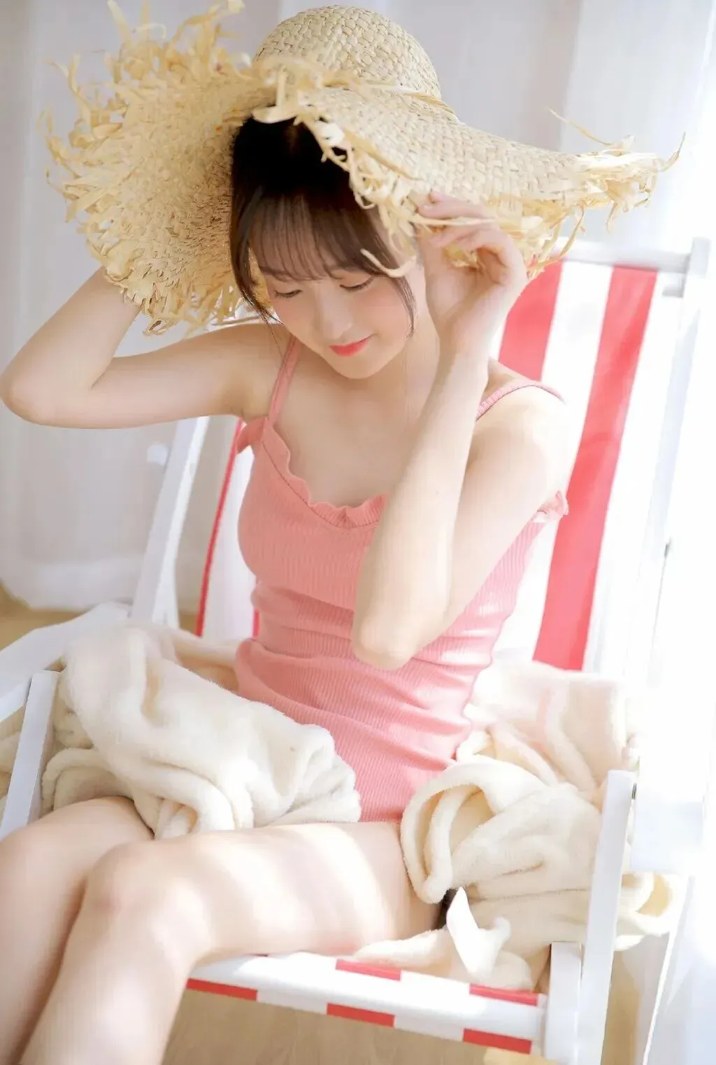 首先服装选择很关键。这种带荷叶边的粉色系泳衣特别显白,能衬托出皮肤的通透感,甜度满分。搭配一顶边缘做旧的大檐草编帽,瞬间就有度假的风情了。再准备一条白色的毛绒毯子或者浴巾,随意搭在身上,既是保暖道具,也是增加画面层次感的秘密武器,还能遮挡一些不想露出的部位,增加安全感。