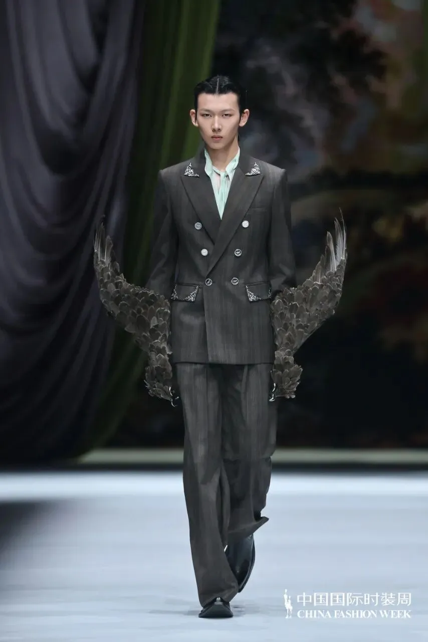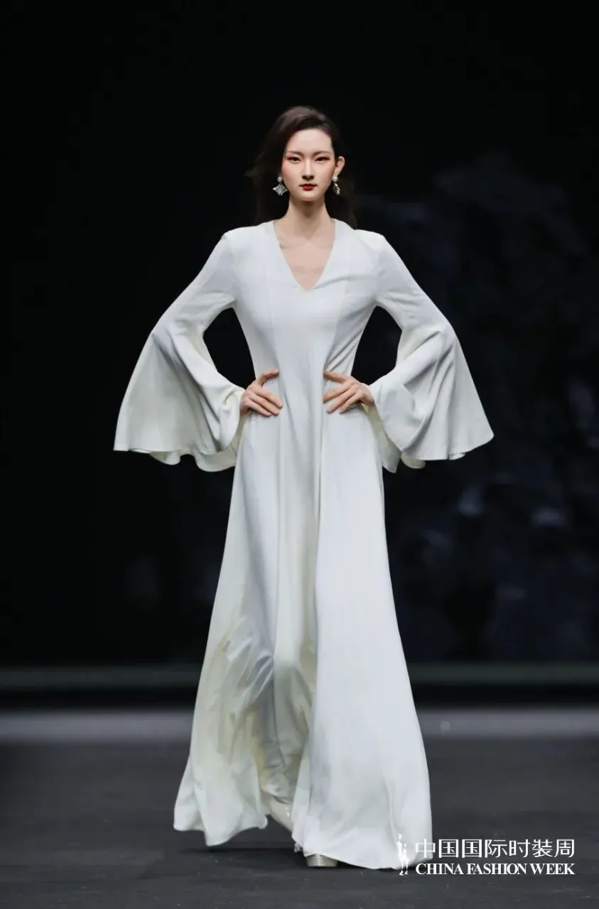 本季主题「半山听雨」,将听雨雅事——雨落半山(雨来)、水光潋滟(雨盛)、云开月明(雨歇)的三种不同听雨之境层层解构和元素提炼,融入面料、结构、图案、色彩与气韵变化中。当雨声不再是外物,而是内心境界的延伸。
