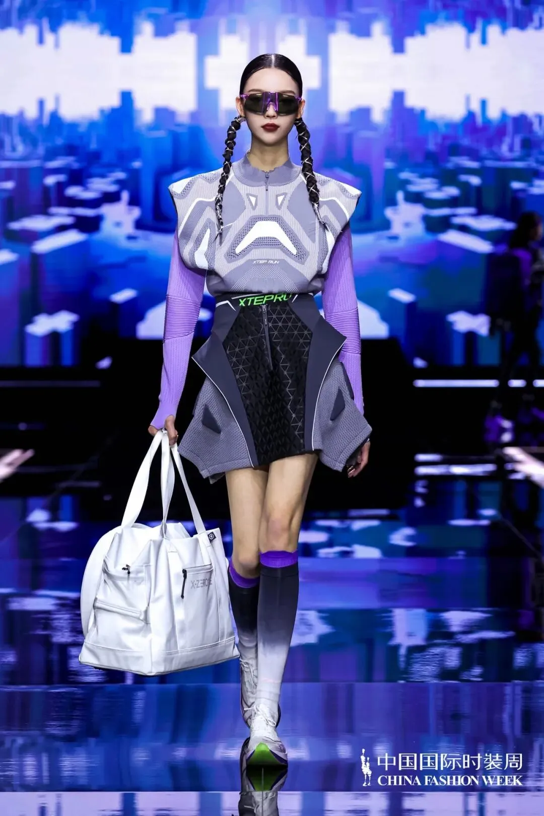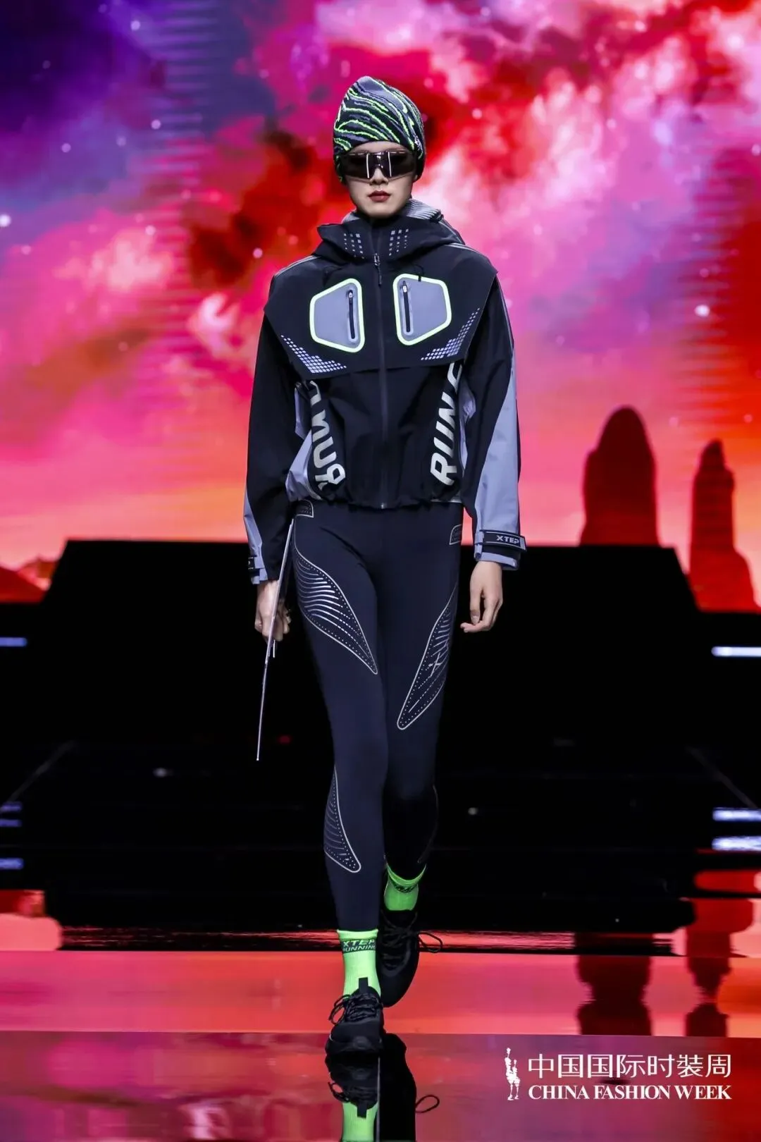特步本场发布主题「昼.夜」,发布会旨在通过独特的视觉叙事,讲述一个关于女性力量、勇气与自我超越的运动故事。我们将舞台设计成多元化的场景,以光影交错模拟昼夜运动场景,每一幕都映射出女孩们在昼夜运动下的飒爽英姿。