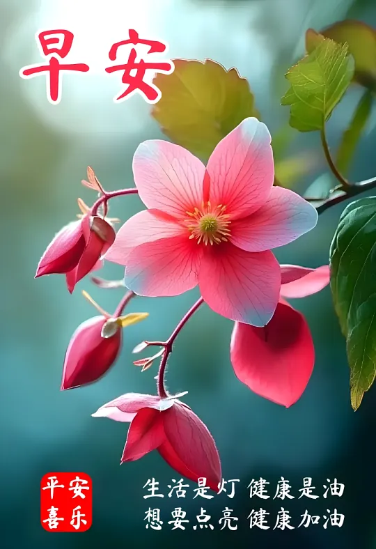 吉星高照福盈门,笑口常开乐无垠。幸福安康常相伴,心想事成好运临。平安顺意吉祥绕,共铸辉煌美梦真。早上好!🌹🍎😊🌺❤️🎉