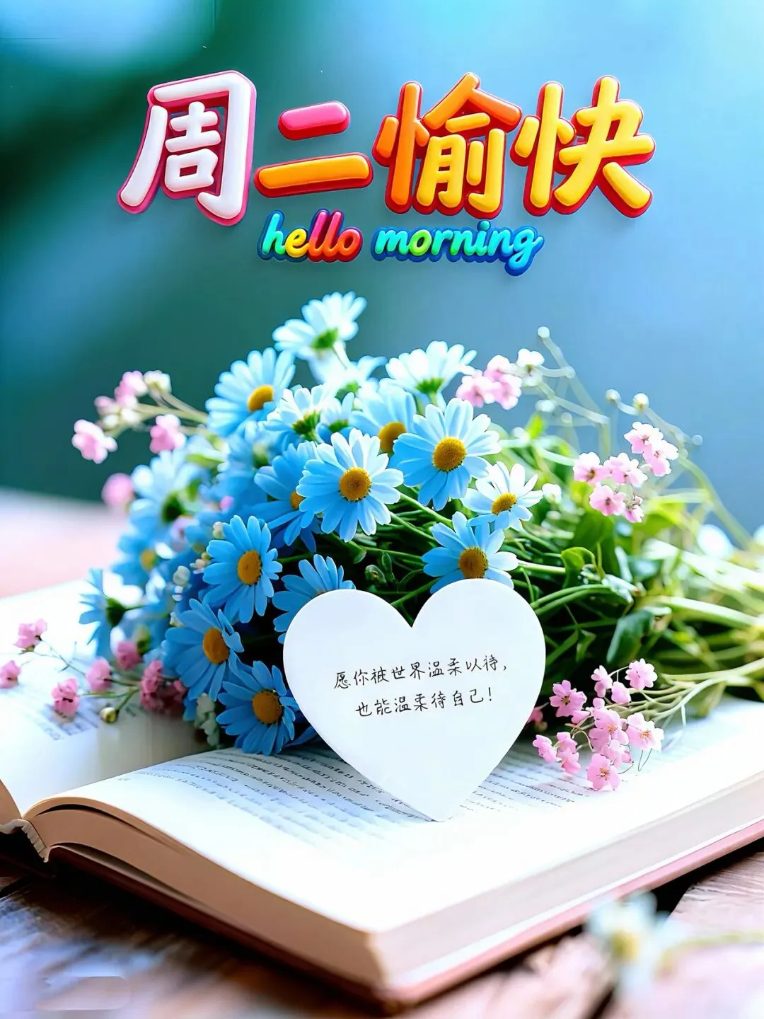 清晨为你送祝福, 天天开心乐无忧。