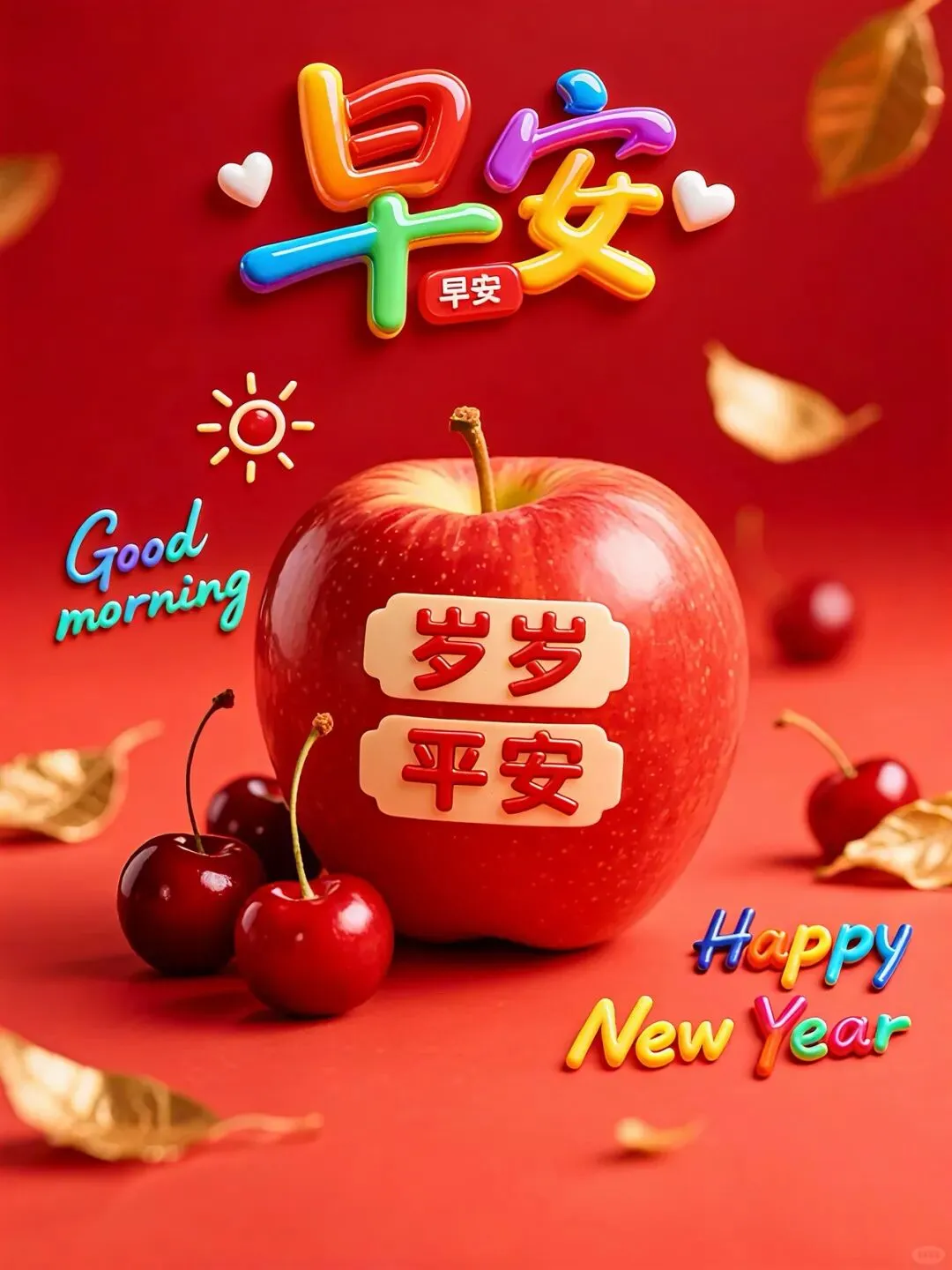 真诚送上三件宝:幸福、快乐、身体好。