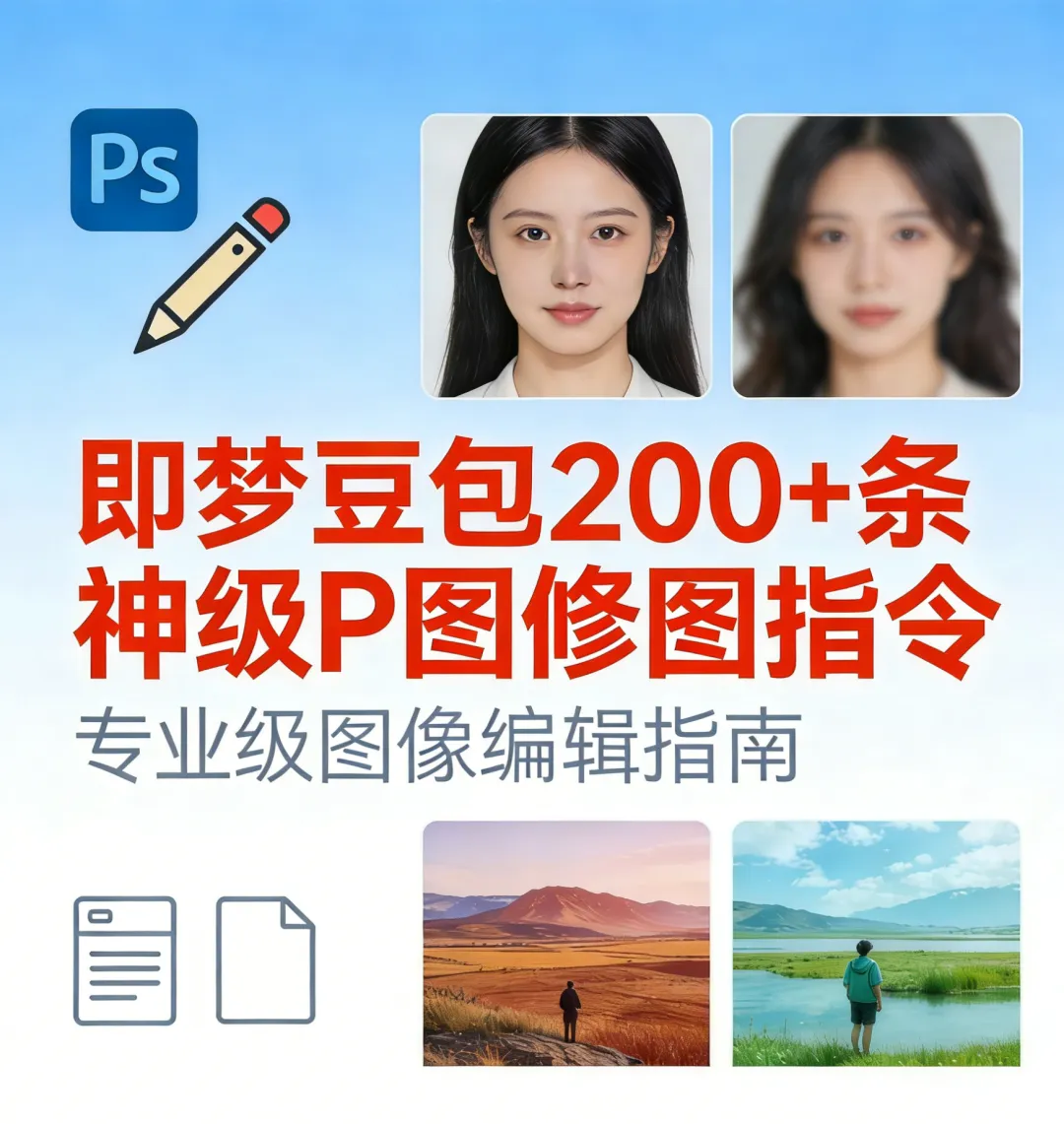 先给大家送波福利,我整理了《即梦豆包200+条神级P图修图指令》,还有一份135条超实用的豆包P图指令合集,两份文档全是干货,