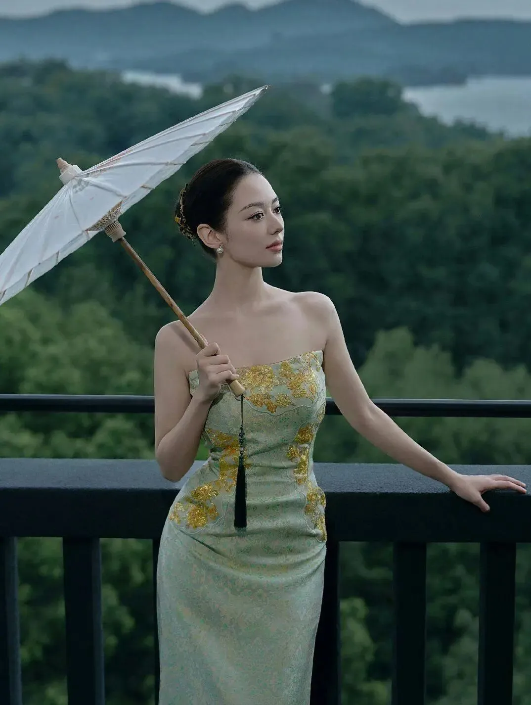 据了解,吉娜·爱丽丝在去年8月曾与《时尚新娘》合作拍摄的七夕国风大片,身着天玺中国礼服“翠懿”的她,在江南水乡的水墨画卷中展现了极致东方韵味。她当天在乌镇拍摄时,一袭碧色旗袍搭配盘发,手持素雅的白色油纸伞,杨柳细腰引人注目,充分展现了东方女性的含蓄与温婉,将东方美学诠释得淋漓尽致。