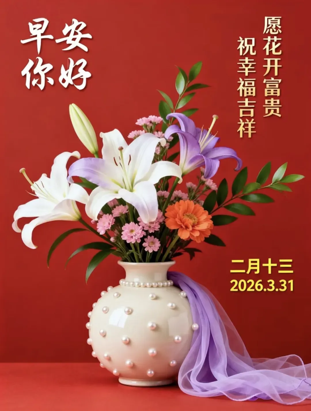 3月31日,周二早安。金句:三月教会你播种,四月等待你开花,而今天是你浇灌的时刻。