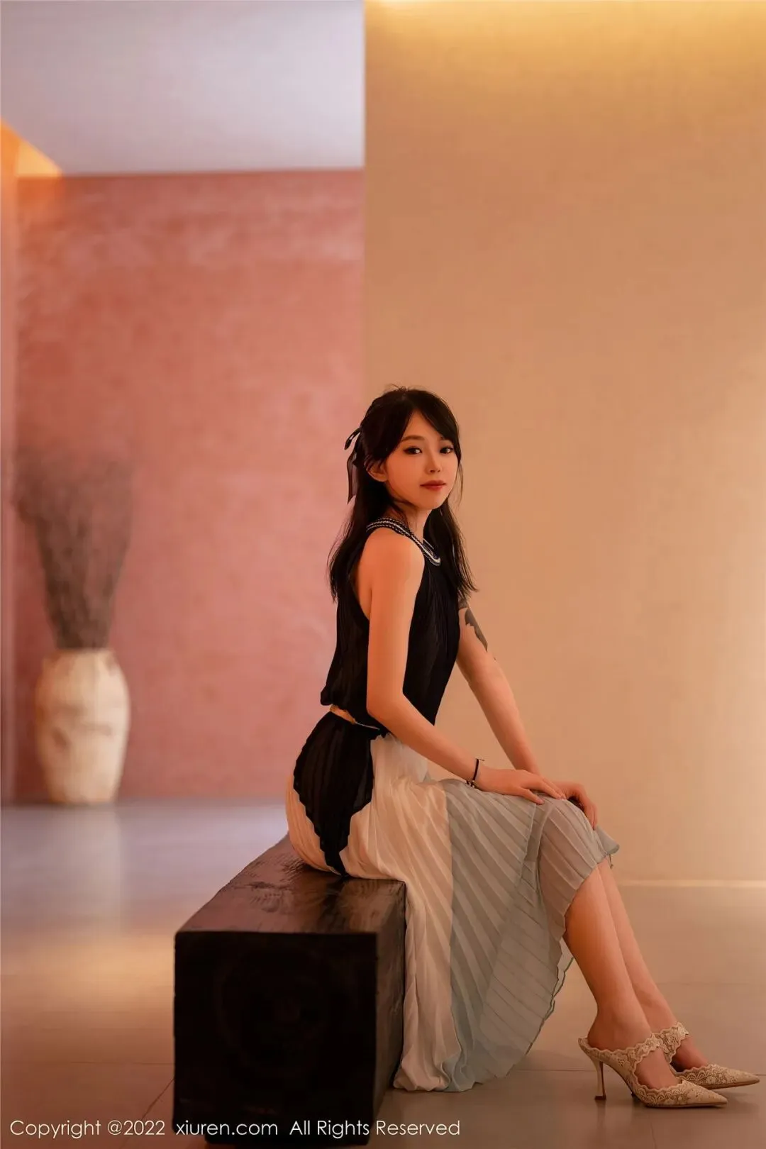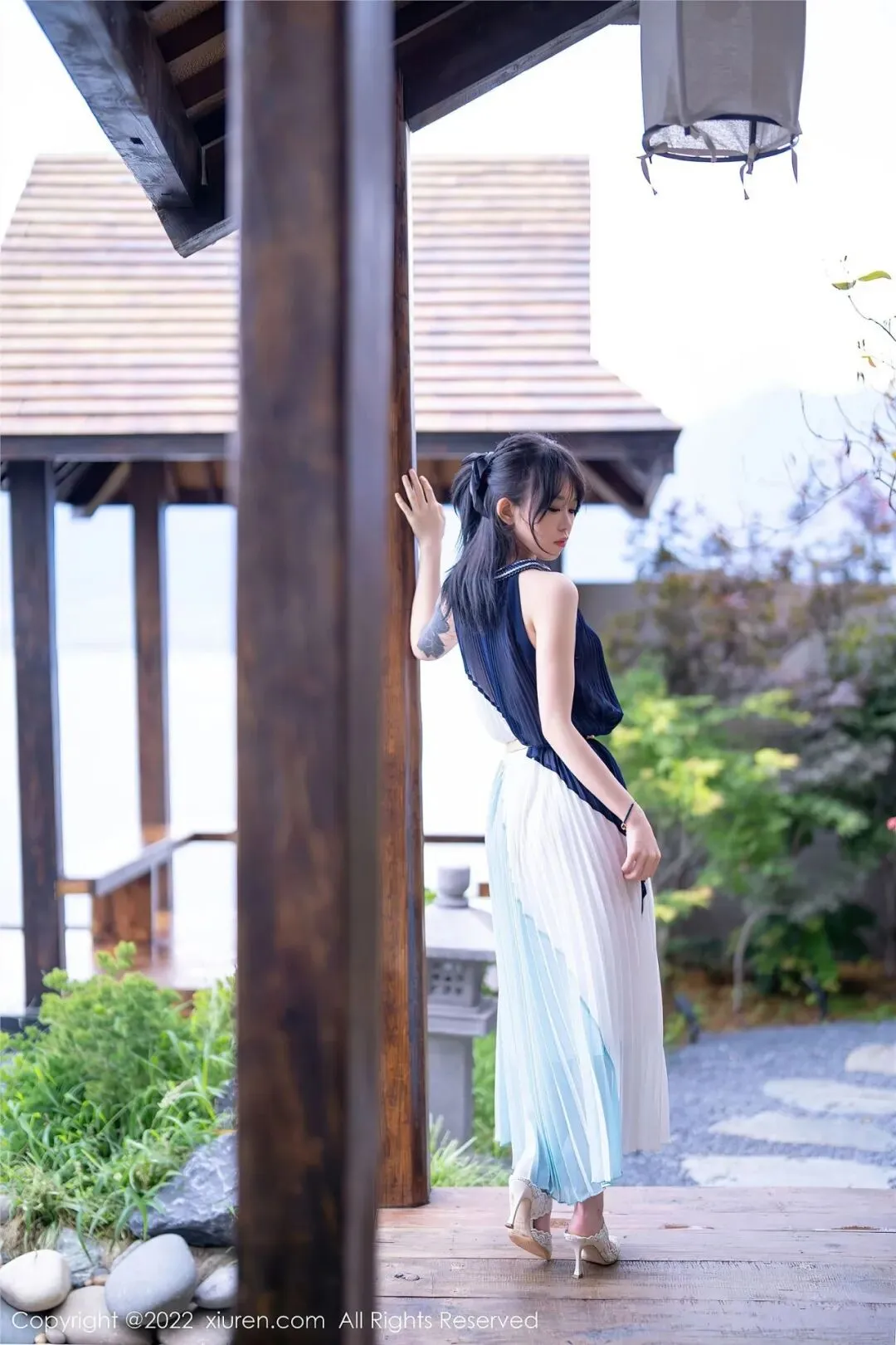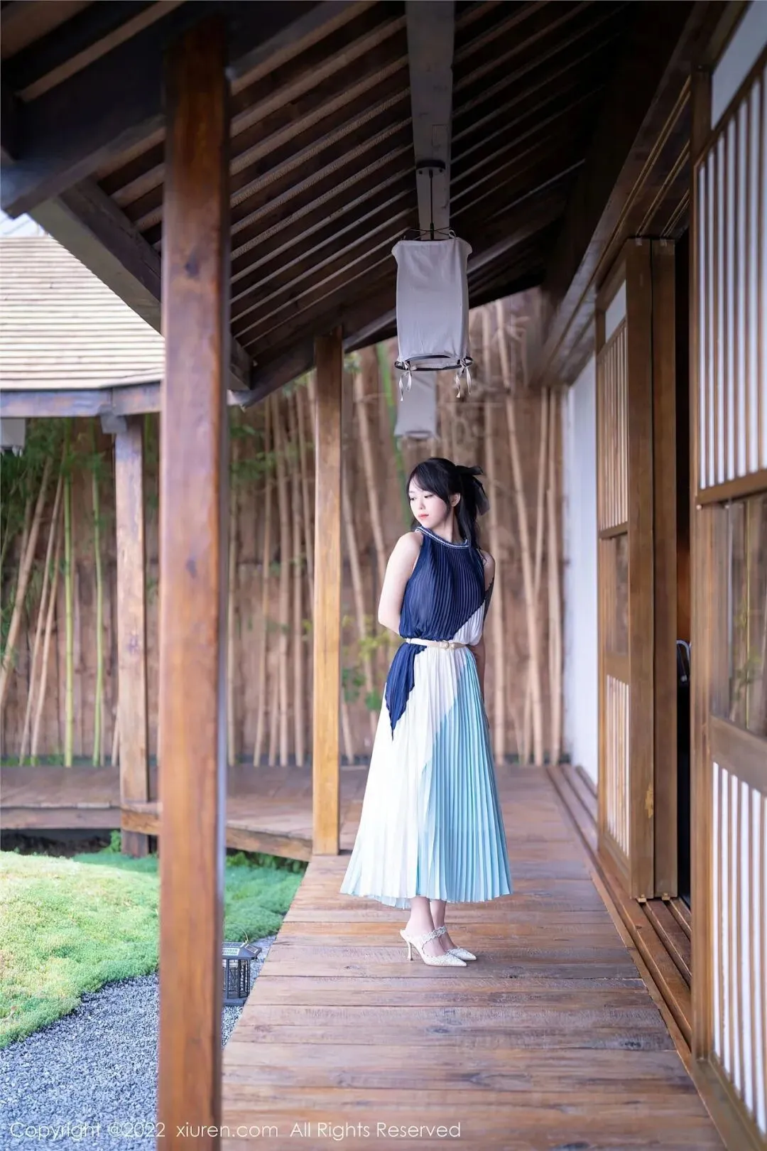 当前位置:首页>美女资讯>模特奶瓶 蓝白拼色连衣长裙搭配丝袜美腿性感写真