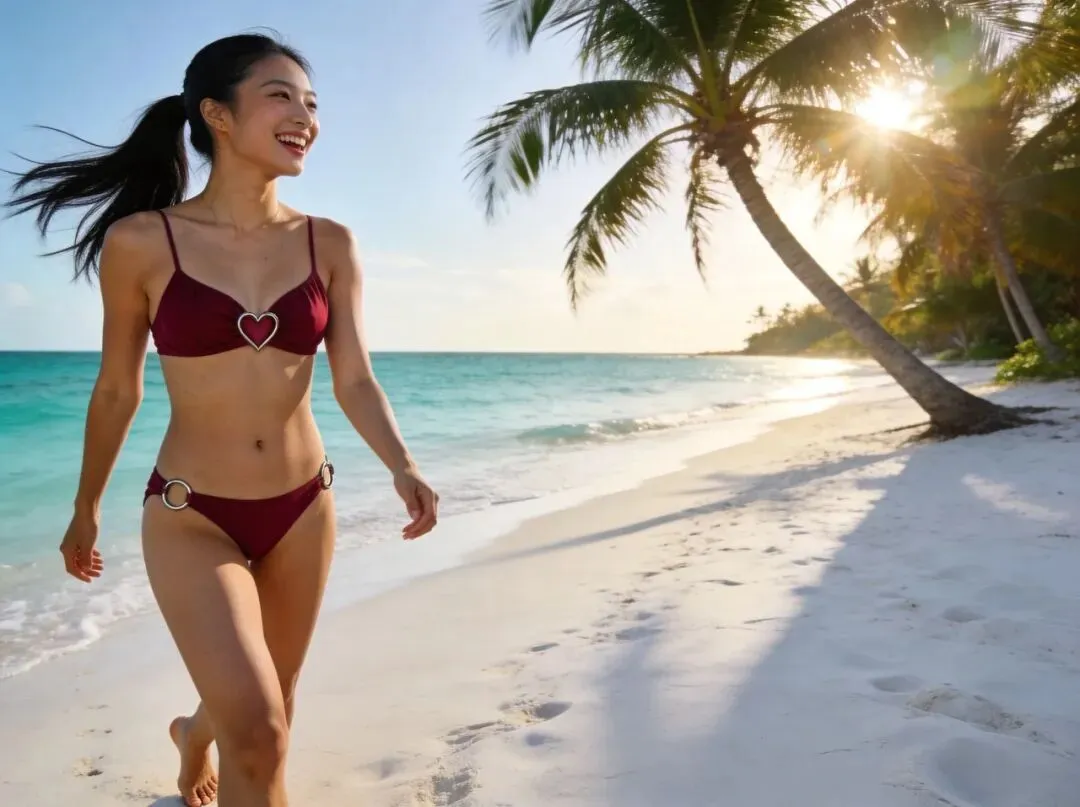 如果你是偏爱柔婉气质的甜系女孩,这款酒红色浪漫风泳衣绝对是夏日海滨的不二之选。它既能完美展现你的身材优势,又能让你在人群中自带浪漫氛围感,无论是沙滩漫步还是泳池嬉戏,都能轻松成为焦点。