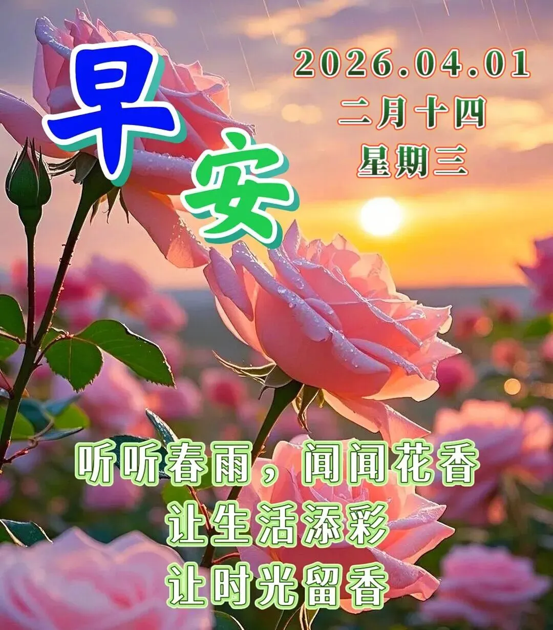 当前位置:首页>美女资讯>4月1日-精选早上好图片漂亮祝福,早上好问候语大全