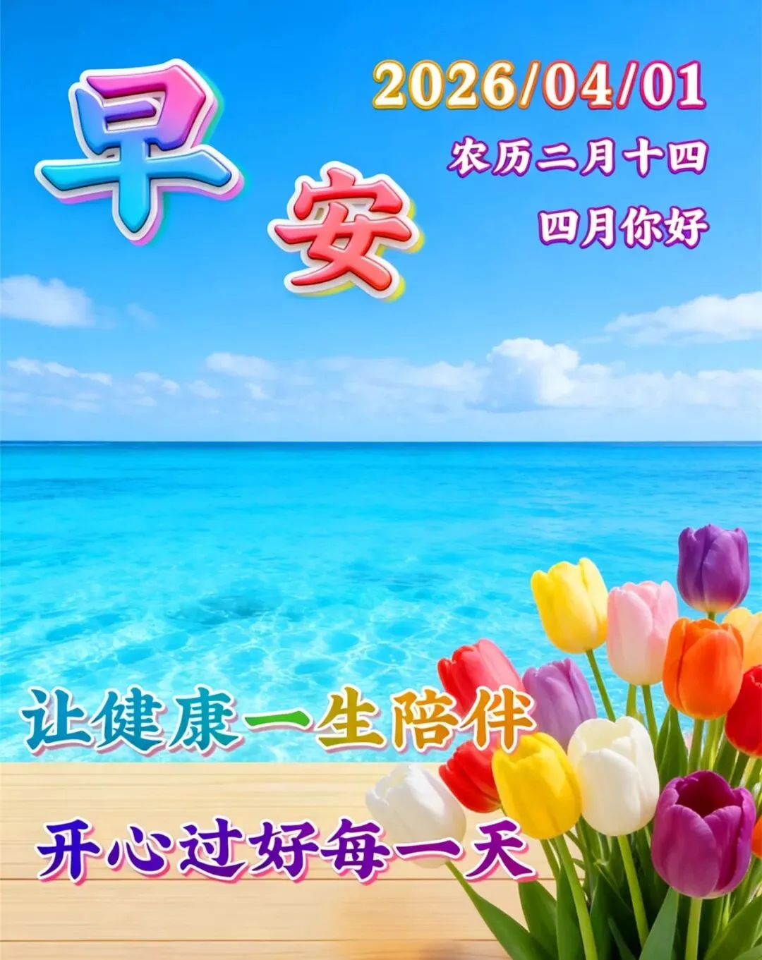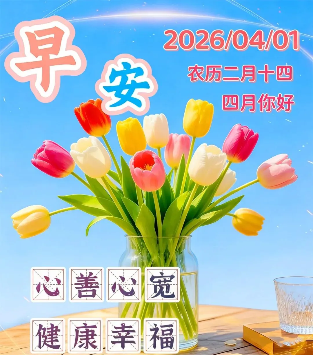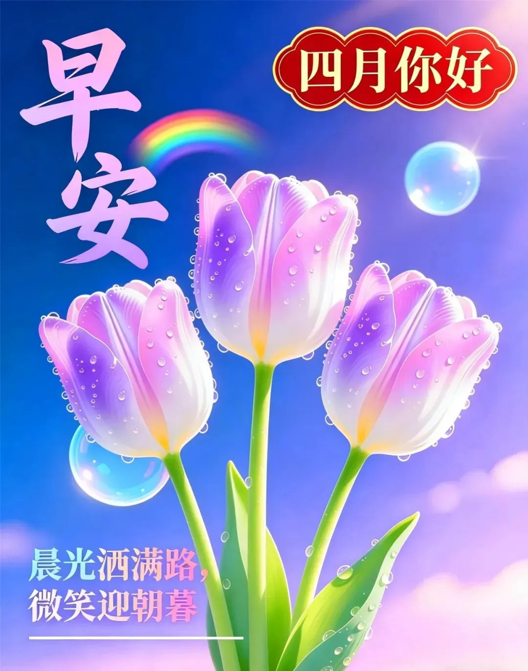 迈入人间四月天,春风有信,花开有期所有的美好都在路上,愿快乐在你身边,愿你新的四月笑口常开!早安!
