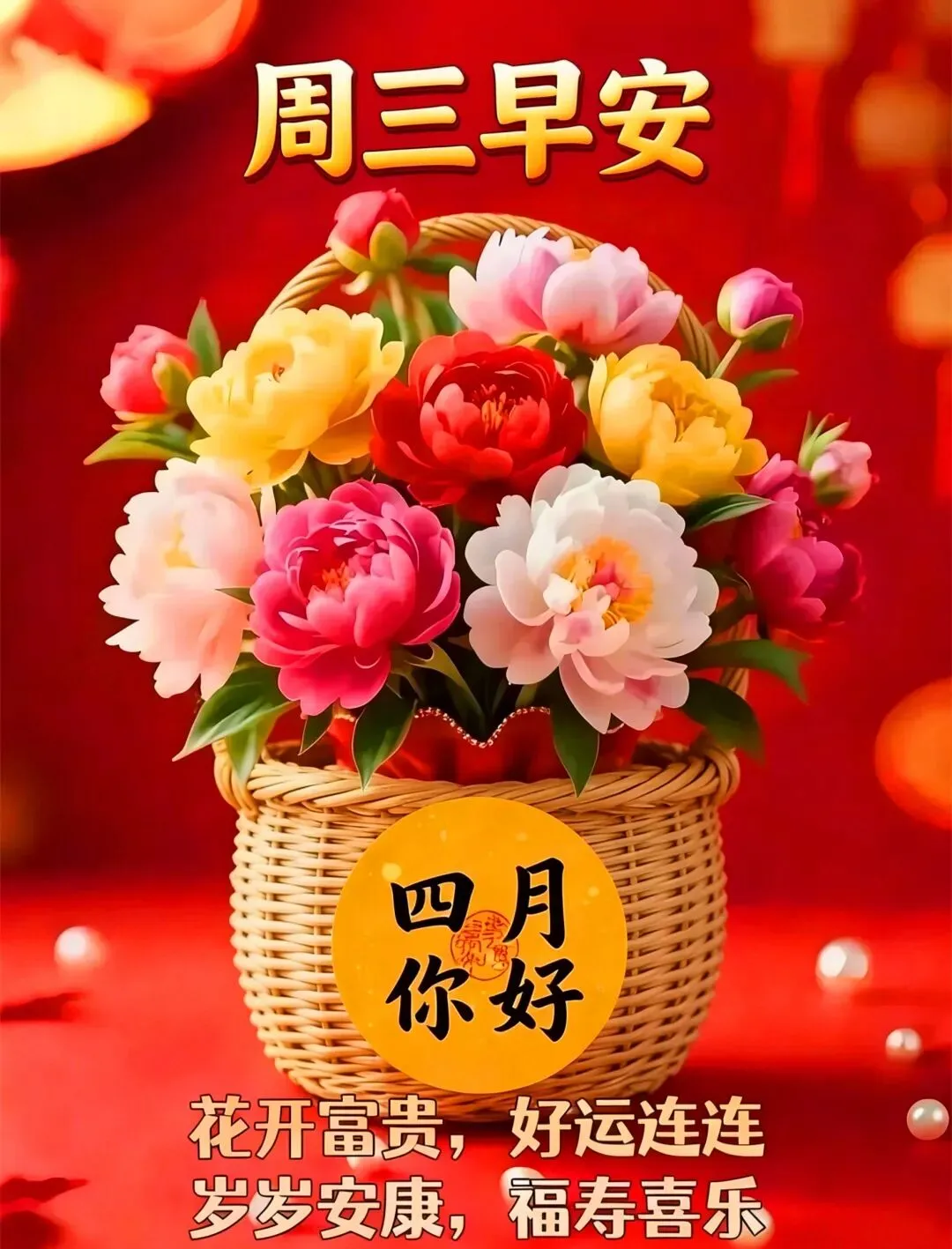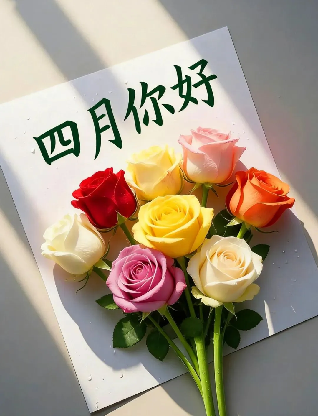 四月你好,春风和煦,阳光温暖,花开时节,不负春光,不负韶华。最美人间四月天,让我们迎接美好四月的到来!早安!