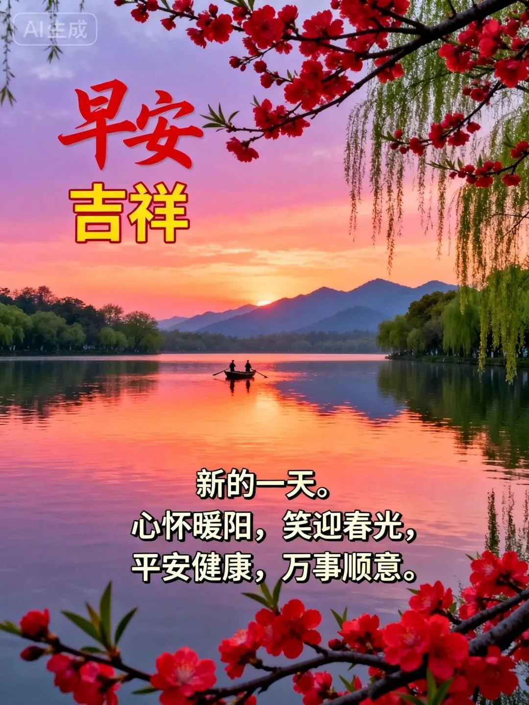 春日清晨,祝福送到。愿你岁月无波澜,余生多欢笑,不求大富大贵,只愿平安健康,日子舒心,生活如意,天天好心情。群里的友友们,早上好🍒💜🎈🌹
