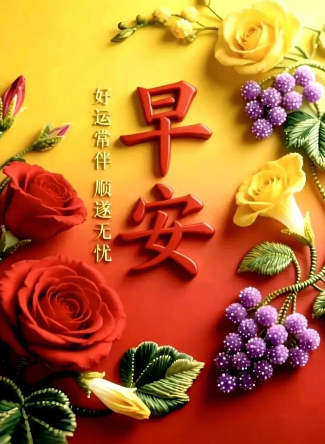 大家早上好!生活有了朋友,才值得回忆。生命有了缘份,才值得珍惜。没有灿烂的语言,只有真诚的祝福,真诚,胜过千言万语;问候,送去温馨祝福;问安,捎去我的心意;祝友健康,快乐,平安!
