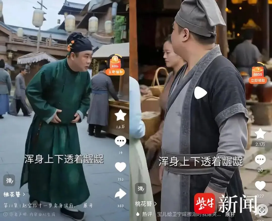 素人拍摄的汉服写真,疑似被短剧《桃花簪》偷去AI生成角色,台词全是恶意诋毁;记者调查:“撞脸”维权难,有横店群演500元“卖脸”