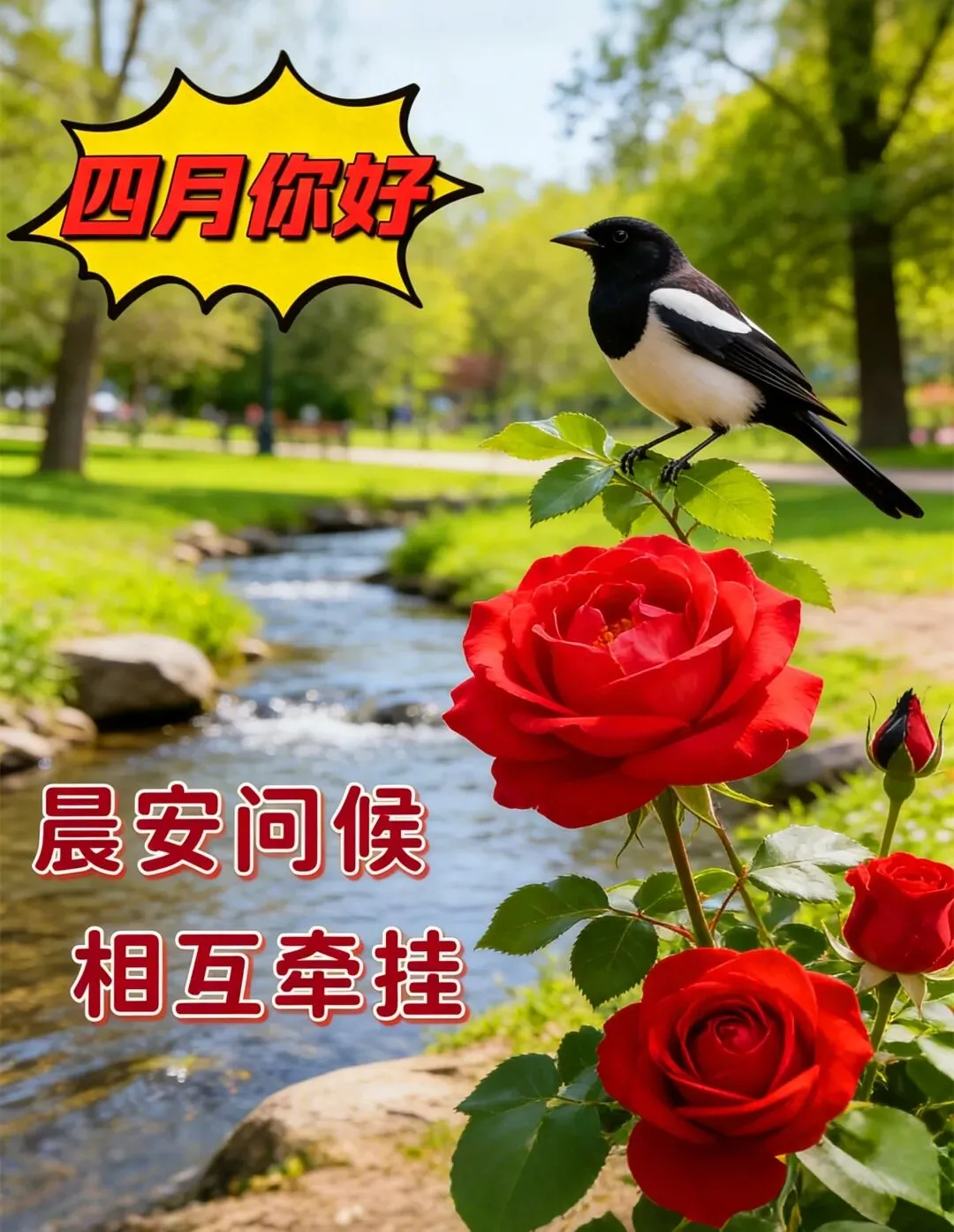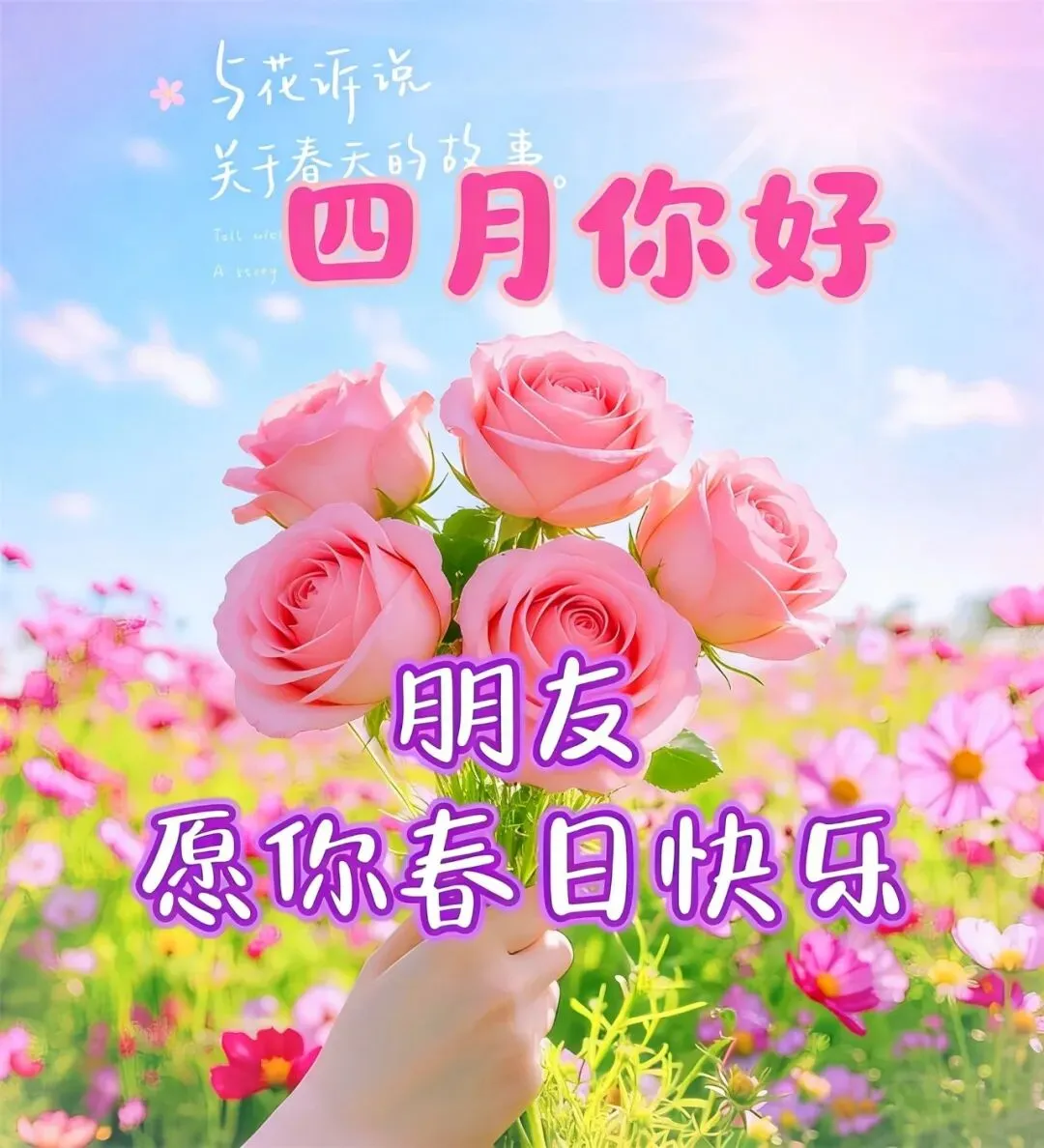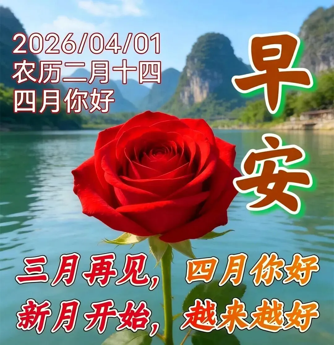 天天都在忙,牵挂不能忘。不求富贵长,只盼君体康。哪怕不见面,情谊心中装。见字如见人,遥祝皆吉祥。四月的第一天,早安!