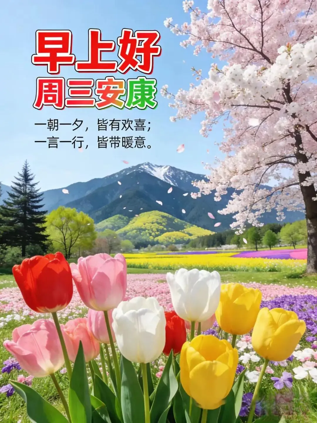 🌅😊🎶周三早上好!愿你今日拥有一份好心情!睁开双眼,为你送上轻轻祝福,愿它每时每刻都为你带来健康、好运与幸福,愿你度过美好的一天!🍀✨🎉