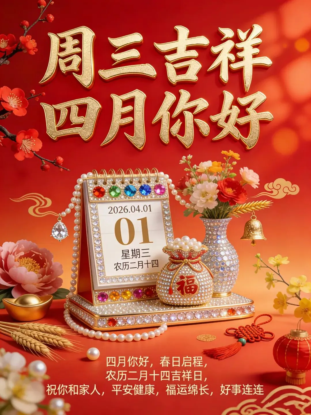 🌸☀️⏳四月如期而至,一切都在慢慢变好。春风轻柔温暖,阳光甜美明媚,恰似人间最好时节。三月再见,四月你好!与过往温柔告别,愿新的一月,满是正能量!🎉🍀😊